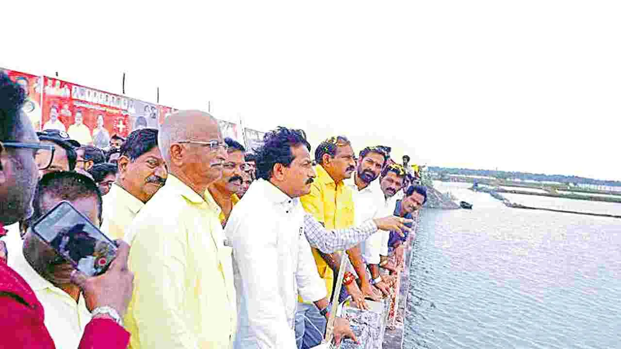 నరసాపురం, నవంబరు 30(ఆంధ్రజ్యోతి): వైసీపీ హయాంలో అన్ని వ్యవస్థలు ధ్వంసమయ్యాయని మంత్రి నిమ్మల రామానాయుడు చెప్పారు. అభివృద్ధి గుండు సున్నా అన్నారు. ఆదివారం పశ్చిమగోదావరి జిల్లా నరసాపురం మండలం పీఎంలంక వద్ద రూ.12.50 కోట్లతో నల్లిక్రీక్ తవ్వకం పనులకు ఎమ్మెల్యే నాయకర్తో కలిసి ఆయన శంకుస్థాపన చేశారు. ఉప్పుటేరులోకి వెళ్లి నల్లిక్రీక్ పాయను పరిశీలించారు. ఈ సందర్భంగా మంత్రి నిమ్మల మాట్లాడుతూ వైసీపీ హయాంలో ఇరిగేషన్ వ్యవస్థ నిర్వీర్యమైందన్నారు. డ్రెయినేజీలు, కాల్వల పూడికతీత పనులు చేపట్టకపోవడం వల్ల రైతులు సాగుకు దూరమయ్యారని చెప్పారు. కూటమి అధికారంలోకి రాగానే వీటిన్నంటిని గాడిలో పెడుతోందన్నారు. ఇటు శ్రీశైలం డ్యామ్ వద్ద ధ్వంసమైన పం్లజ్పూల్, సైడ్ వాల్ నిర్మాణానికి రూ.200 కోట్లు, ధవళేశ్వరం బ్యారేజ్ ఆధునికీకరణ పనులకు రూ.150 కోట్లు, తుంగభద్ర గేటు మరమ్మతులకు రూ.54 కోట్లు కేటాయించామని తెలిపారు. రానున్న రోజుల్లో పెండింగ్ పనులకు దశల వారీగా నిధులు కేటాయించి పూర్తి చేస్తామని చెప్పారు.