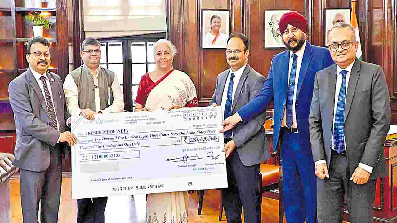కెనరా బ్యాంక్.. 2024-25 ఆర్థిక సంవత్సరానికి సంబంధించి కేంద్ర ప్రభుత్వానికి రూ.2,283.41 కోట్ల డివిడెండ్ను అందించింది.