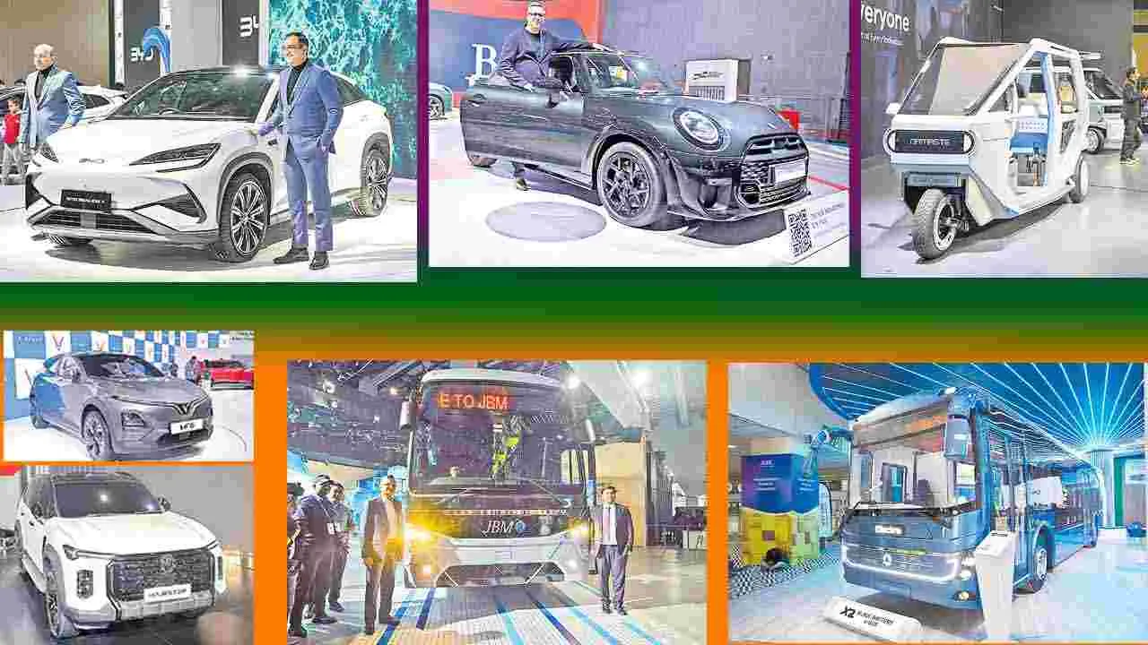 దేశ రాజధాని ఢిల్లీలో ‘భారత్ మొబిలిటీ గ్లోబల్ ఎక్స్పో 2025’ పేరుతో ప్రారంభమై వాహనాల ప్రదర్శన పండగ సందడిగా సాగుతోంది. ఈ ఎక్స్పోలో రెండో రోజూ ఎలక్ట్రిక్ వాహనాలే ప్రధానంగా సందర్శకుల దృష్టిని ఆకర్షించాయి...