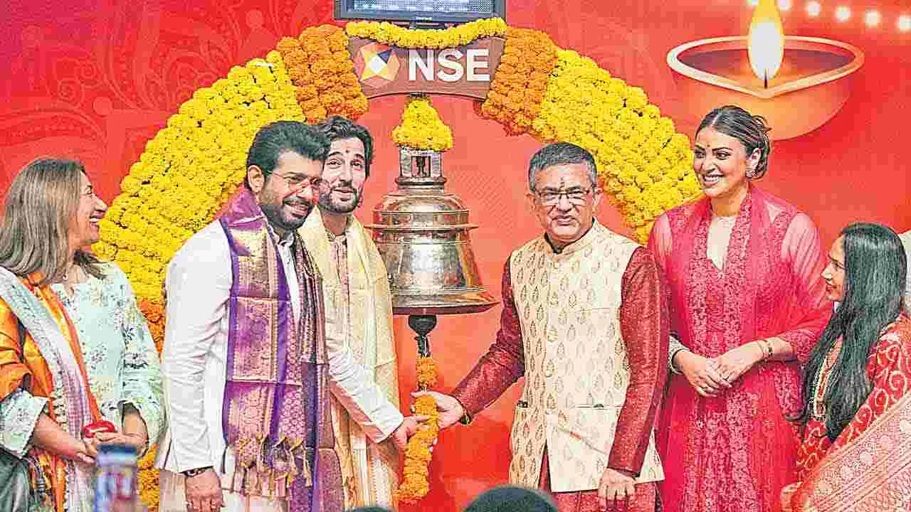 ముహూరత్ ట్రేడింగ్ సందర్భంగా గంట కొట్టి ట్రేడింగ్ను ప్రారంభిస్తున్న ఎన్ఎస్ఈ ఎండీ, సీఈఓ ఆశిష్ కుమార్ చౌహాన్