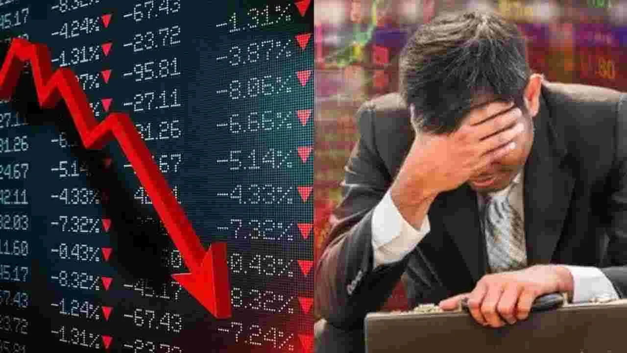 ముంబై: లాభాల స్వీకారం, ఎఫ్పీఐల అమ్మకాలు సోమవారం స్టాక్ మార్కెట్ను కుంగదీశాయి. సెన్సెక్స్ 609.68 పాయింట్ల నష్టంతో 85,102.69 వద్ద ముగియగా నిఫ్టీ 225.90 పాయింట్ల నష్టంతో 25,960.55 వద్ద ముగిసింది. దీంతో బీఎ్సఈ లిస్టెడ్ కంపెనీల షేర్ల మార్కెట్ విలువ రూ.7.12 లక్షల కోట్లు నష్టపోయి రూ.464.19 లక్షల కోట్లకు చేరింది. సెన్సెక్స్లోని 30 షేర్లలో 29 షేర్లు నష్టాలతో ముగిశాయి. ఈ పతనానికి కారణాలేమిటో పరిశీలిద్దాం.