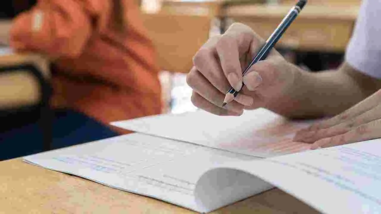 Exams: కళ్లకు గంతలతో 8వ తరగతి పరీక్ష..