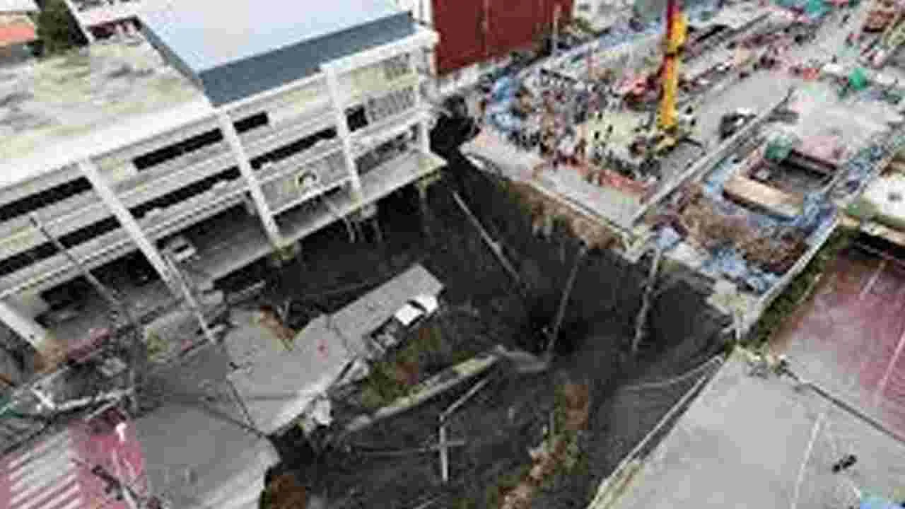 న్యూఢిల్లీ, సెప్టెంబరు 24: థాయ్లాండ్ రాజధాని బ్యాంకాక్ నడిబొడ్డున.. రోడ్డు ఆకస్మాత్తుగా భూమిలోకి కుంగిపోయి 50 మీటర్ల భారీ గొయ్యి ఏర్పడింది. ఫలితంగా పలు వాహనాలు ధ ్వంసమయ్యాయి. విద్యుత్ స్తంభాలు కూలిపోయి, కరెంటు తీగలు గాల్లో వేలాడుతూ ప్రమాదకరంగా మారాయి. నీటి పైపులైన్లు పగిలిపోయు పెద్ద ఎత్తున్న నీరు పైకి ఉబికి రావడంతో పాటు సమీపంలోని భవనాలకు పగుళ్లు ఏర్పడ్డాయి. ఇందుకు సంబంధించిన దృశ్యాలు సోషల్ మీడియాలో వైరల్గా మారాయి. ఈ ఘటన బుధవారం ఉదయం సమ్సెన్ రోడ్డులోని ఓ ఆస్పత్రి సమీపంలో జరిగింది. దీంతో ఆ ప్రాంతాన్ని అధికారులు పూర్తిగా మూసివేశారు. ముందు జాగ్రత్త చర్యగా హాస్పిటల్ నుంచి రోగులను, సమీప అపార్ట్మెంట్ వాసులను సురక్షిత ప్రాంతాలకు తరలించారు. ఘటన జరిగిన ప్రాంతానికి సమీపంలో జరుగుతోన్న భూగర్భ రైల్వే స్టేషన్ నిర్మాణ పనుల కారణంగానే భారీ గొయ్యి ఏర్పడిందని బ్యాంకాక్ గవర్నర్ చాడ్చార్ట్ సిట్టిపాంట్ స్పష్టం చేశారు. అయితే, ఎలాంటి ప్రాణనష్టం జరగలేదని, మూడు వాహనాలు ధ్వంసమయ్యాయని తెలిపారు.