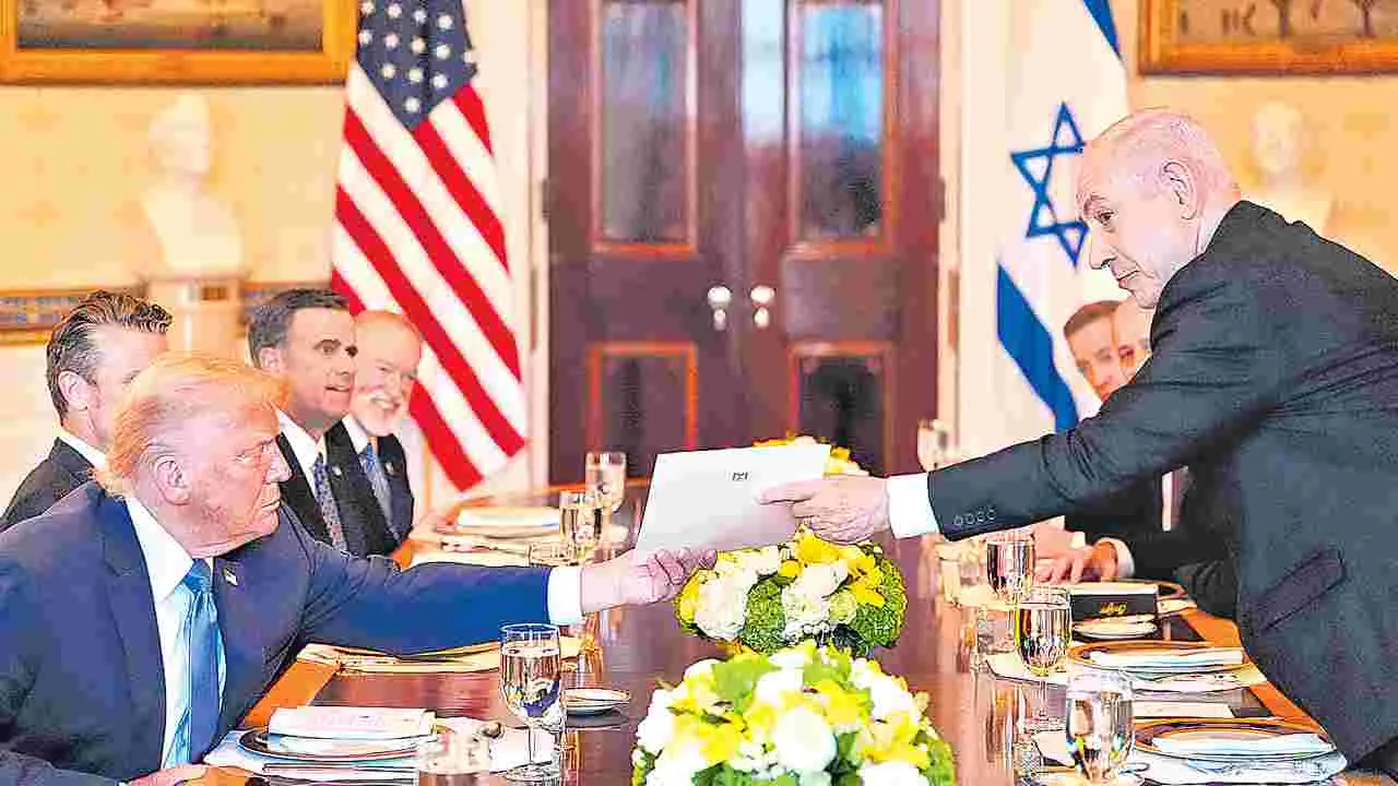 వాషింగ్టన్, జూలై 8: అమెరికా అధ్యక్షుడు ట్రంప్కు నోబెల్ శాంతి బహుమతి ఇవ్వాలని ఇజ్రాయెల్ ప్రధాని నెతన్యాహూ ప్రతిపాదించారు. ఈ మేరకు నోబెల్ ప్రైజ్ కమిటీకి తాను పంపిన లేఖ ప్రతిని నెతన్యాహూ స్వయంగా సోమవారం ట్రంప్కు అందజేశారు. ట్రంప్తో విందులో పాల్గొనేందుకు నెతన్యాహూ వైట్హౌస్కు విచ్చేశారు. ఈ సందర్భంగా ఇరువురూ భేటీ అయ్యారు. అనంతరం ట్రంప్ను ఉద్దేశించి నెతన్యాహూ మాట్లాడుతూ ‘మిస్టర్ ప్రెసిడెంట్.. నోబెల్ శాంతి బహుమతికి మీరు అర్హులు. అది మీకు తప్పక దక్కుతుంది’ అన్నారు. ‘ట్రంప్ ఒక దేశం తర్వాత మరొక దేశంలో, ఒక ప్రాంతం తర్వాత మరొక ప్రాంతంలో శాంతిని నెలకొల్పుతున్నారు’ అన్నారు. నోబెల్ శాంతి బహుమతి కోసం సుదీర్ఘకాలంగా ఆకాంక్షను వ్యక్తం చేస్తున్న ట్రంప్ తాజా ప్రతిపాదనపై నెతన్యాహూకు కృతజ్ఞతలు తెలిపారు. ‘మీరు చాలా అర్థవంతంగా మాట్లాడారు. మీకు చాలా కృతజ్ఞతలు’ అన్నారు.