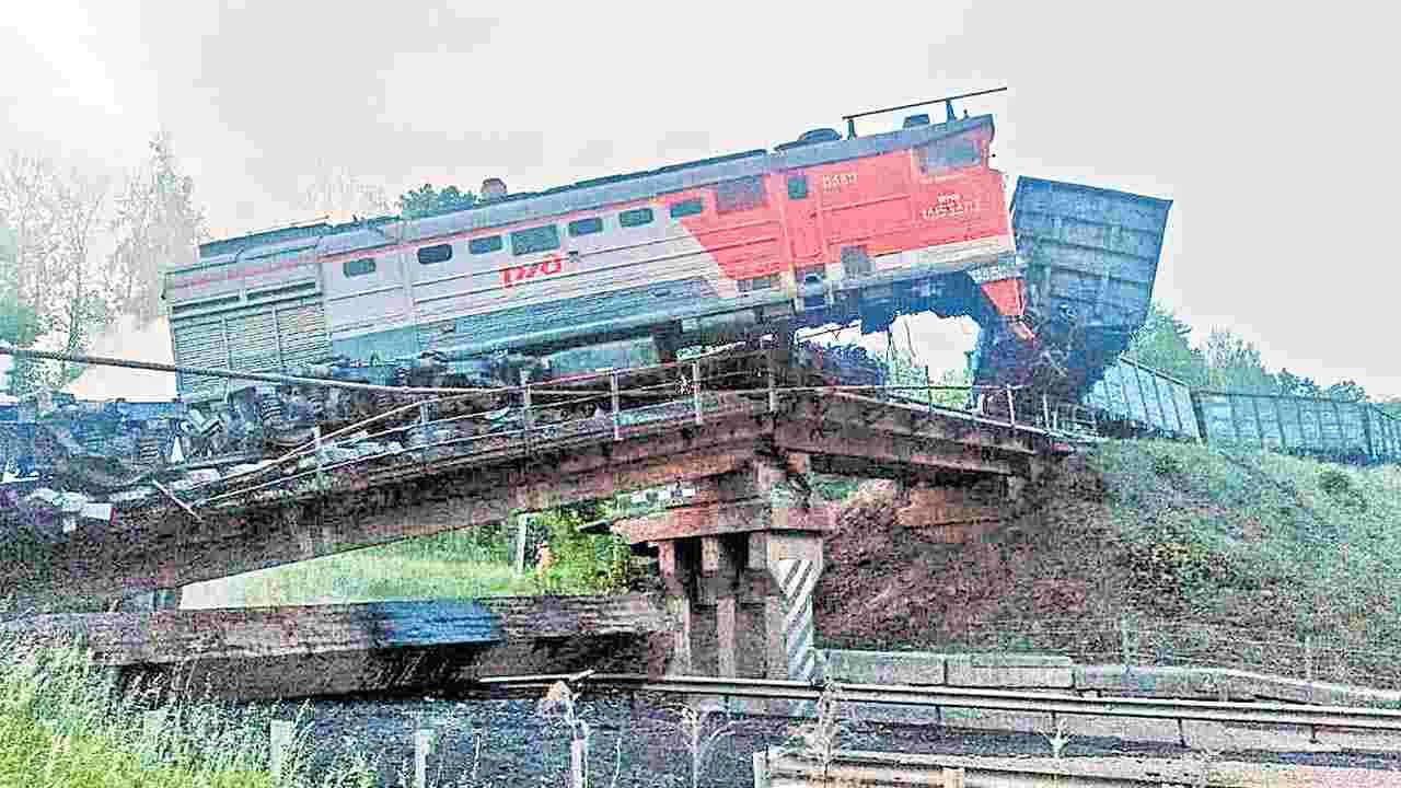 మాస్కో, జూన్ 1: రష్యాలో 24 గంటల వ్యవధిలో రెండు వంతెనలు కూలి రైలు ప్రమాదాలు జరగడం అనుమానాలను రేకెత్తిస్తున్నాయి. ఆదివారం గూడ్సు రైలు ప్రయాణిస్తున్న సమయంలోనే ఓ వంతెన కూలింది. శనివారం కూడా ప్రయాణికుల రైలు వెళ్తున్న సమయంలోనే మరో వంతెన కుప్పకూలింది. ఇందుకు ఉక్రెయినే కారణమన్న అనుమానాలు వ్యక్తమవుతున్నాయి. ఉక్రెయిన్కు సరిహద్దులో ఉన్న కుర్స్క్ ప్రాంతంలో గూడ్సు రైలు ప్రమాదం జరిగింది. రైలులోని కొంత భాగం కిందనున్న రోడ్డుపై పడింది. డ్రైవర్ గాయపడ్డట్టు సమాచారం అందింది. పేలుడు కారణంగానే ఈ బ్రిడ్జి కూలినట్టు రష్యాకు చెందిన ఇంటర్ఫ్యాక్స్ ఏజెన్సీ తెలిపింది. శనివారం రాత్రి బ్రైన్సక్ ప్రాంతంలో కూడా వంతెన కుప్పకూలడంతో అదే సమయంలో దానిపై నుంచి వెళ్తున్న మాస్కో- క్లిమోవ్ రైలు ప్రమాదానికి గురయి పట్టాలు తప్పింది. ఈ దుర్ఘటనలో ఏడుగురు మరణించగా, 69 మంది గాయపడ్డారు. మరణించిన వారిలో రైలు డ్రైవరు కూడా ఉన్నారు. చీకట్లో ప్రయాణికులు ఒకరినొకరు సహాయం చేసుకుంటున్న వీడియో సామాజిక మాధ్యమాల్లో వైరల్గా మారింది. ఉక్రెయిన్ ఉగ్రవాదులకు నిలయంగా మారిందని, అందుకే వంతెనలను పేల్చివేస్తోందని రష్యాకు చెందిన సీనియర్ సెనేటర్ ఒకరు ఆరోపించారు.