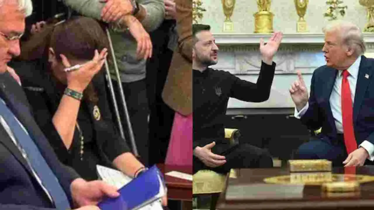 ఈ దృశ్యాలు తట్టుకోలేకపోయిన ఓ ఉక్రెయిన్ దౌత్యవేత్త షాక్లో తలపట్టుకున్నారు. ట్రంప్, జెలెన్స్కీ చర్చలు చివరకు వాగ్వాదానికి దిగడాన్ని తట్టుకోలేక వారిపై వైపు చూడలేక చేతుల్లో ముఖం దాచుకున్నారు. ఆమె ఎదుర్కొంటున్న అవమాన భారం, పరిస్థితులు చేయి దాటిపోతున్నా ఏం చేయలేక నిస్సహాయంగా మిగిలిపోయిన వైనం నెట్టింట వైరల్గా మారింది.