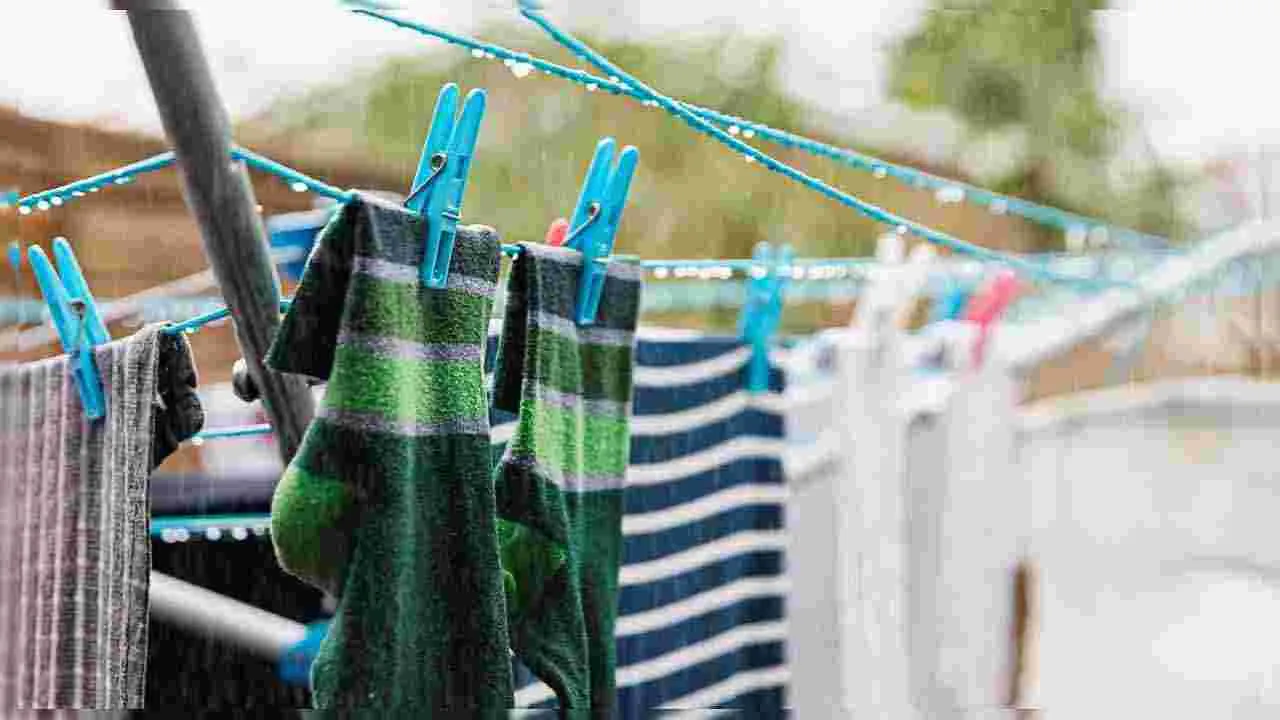 చల్లని వాతావరణం కారణంగా వర్షాకాలంలో తడిబట్టలు ఒక పట్టాన ఆరవు. ఎక్కువ రోజులు అలాగే బయట ఆరేస్తే దుర్వాసన వస్తాయి. అయితే, ఈ సులభమైన చిట్కాలు అవలంబిస్తే చాలా తక్కువ సమయంలోనే బట్టలు ఆరిపోతాయి. అవేంటో చూద్దాం..