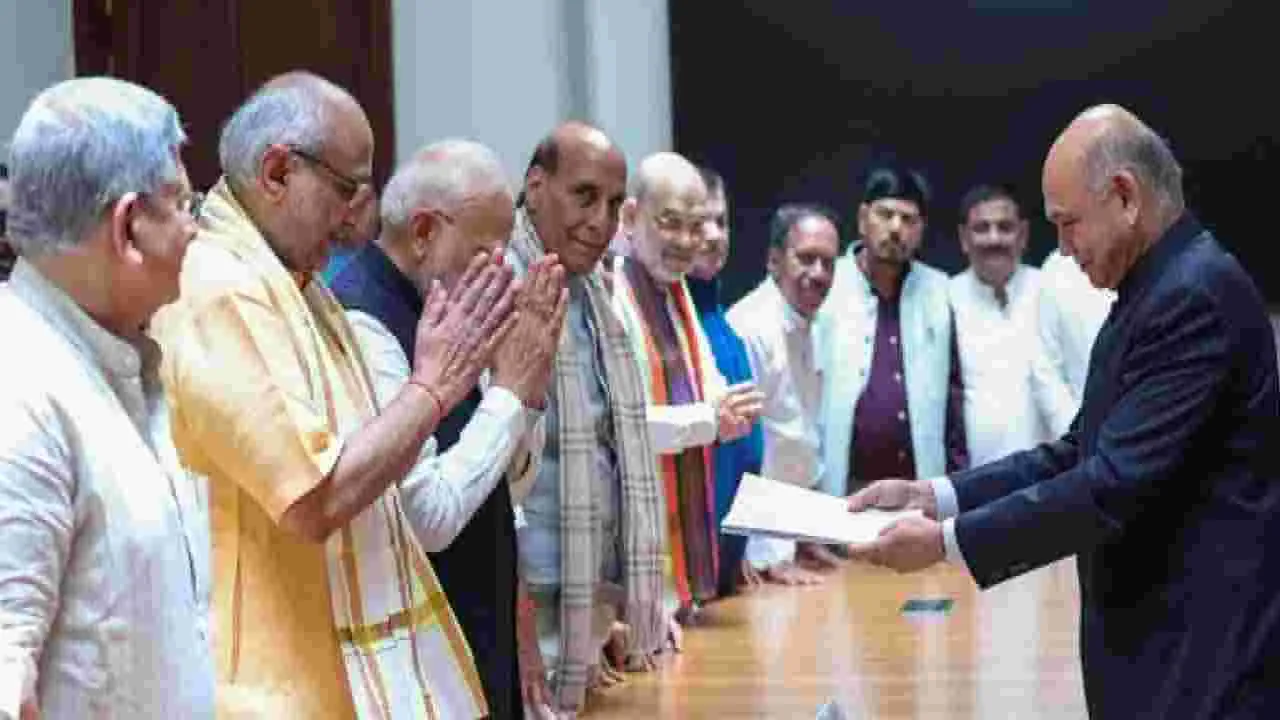 న్యూఢిల్లీ: ఎన్డీయే ఉప రాష్ట్రపతి అభ్యర్థి సీపీ రాధాకృష్ణన్ (CP Radhakrishnan) బుధవారంనాడు తన నామినేషన్ పత్రాలను దాఖలు చేశారు. ప్రధాన మంత్రి నరేంద్ర మోదీ, కేంద్ర మంత్రులు అమిత్షా, రాజ్నాథ్ సింగ్, నితిన్ గడ్కరి, బీజేపీ జాతీయ అధ్యక్షుడు జేపీ నడ్డా సహా పలువురు మంత్రుల సమక్షంలో రిటర్నింగ్ అధికారికి నామినేషన్ పత్రాలను రాధాకృష్ణన్ సమర్పించారు.