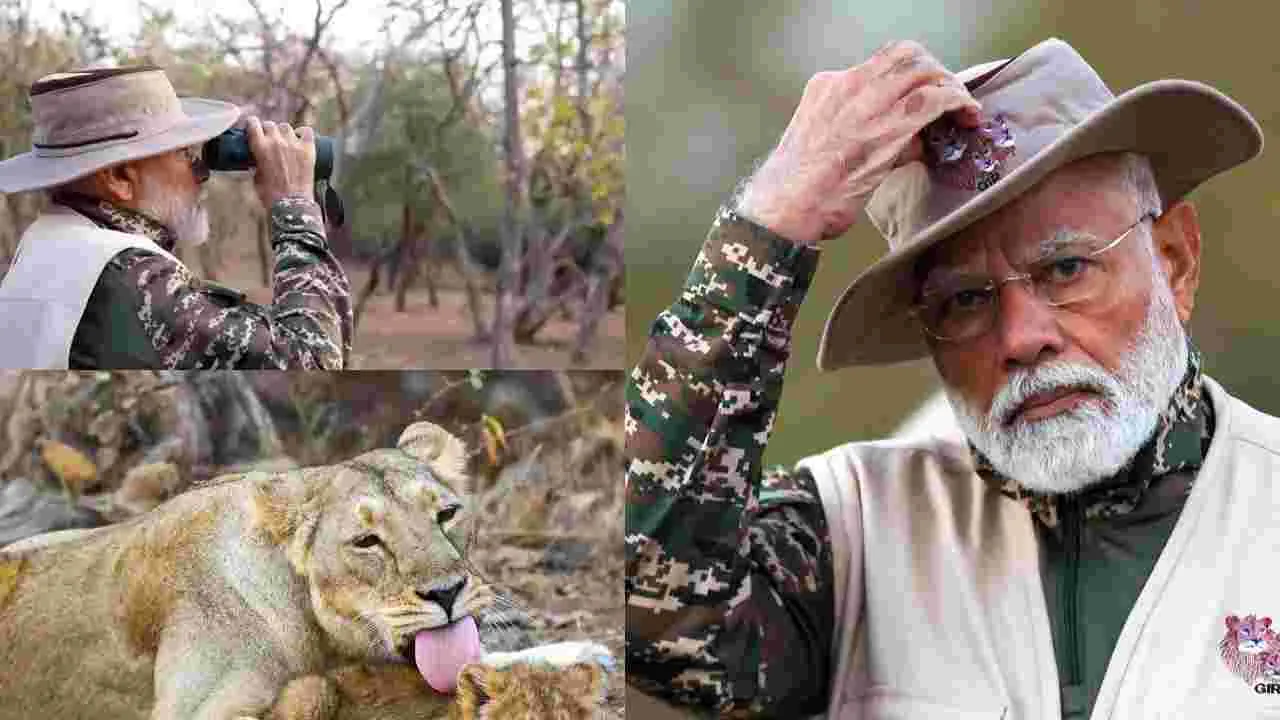 PM Modi Safari : చేతిలో కెమెరా.. ముందు సింహం.. ప్రధాని మోదీ సఫారీ..