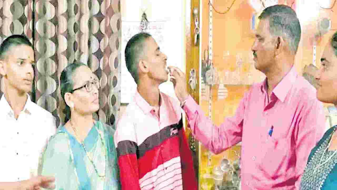 కేక్ కట్ చేసి ధైర్యం నింపిన తల్లిదండ్రులు