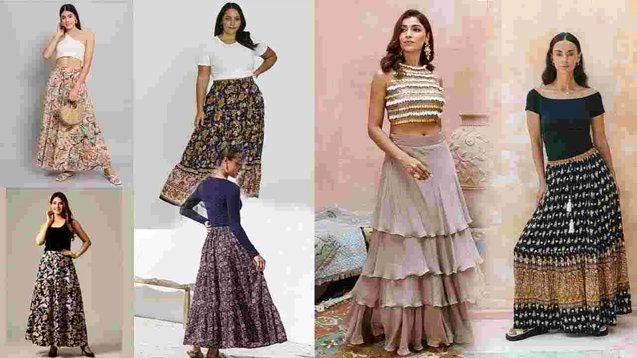 ప్రింటెడ్: ప్రింటెడ్ స్కర్ట్ ఎంచుకుంటే, సాదా టాప్ వేసుకోవాలి. ముందరి వైపు గుండీలున్న స్కర్ట్కు, క్రాప్ టాప్, బెల్ట్ బాగుంటాయి.