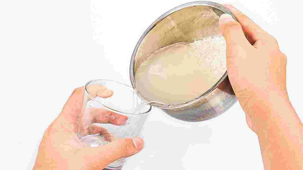 ఒక గిన్నెలో ఒక కప్పు బియ్యాన్ని తీసుకుని శుభ్రంగా కడగాలి. వెంటనే రెండు కప్పుల నీళ్లు పోసి అరగంటసేపు నానబెట్టాలి. తరవాత ఈ నీటిని మరో గిన్నెలోకి వడకట్టాలి.