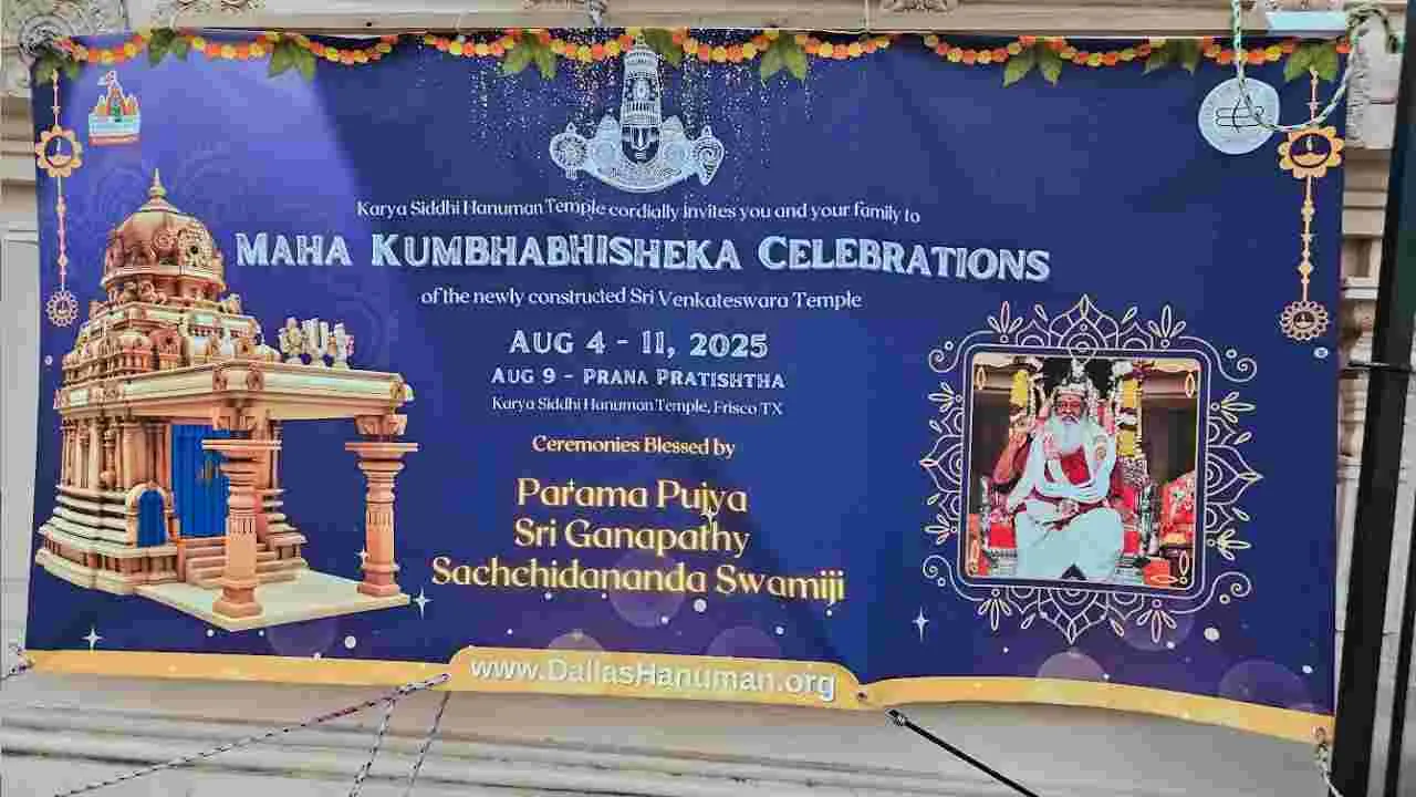 ఇంటర్నెట్ డెస్క్: ప్రవాస భారతీయులు, తెలుగువారు అధికంగా నివసించే డల్లాస్ పరిసర ప్రాంతమైన ఫ్రిస్కోలో మైసూరు అవధూత దత్తపీఠ వ్యవస్థాపకులు గణపతి సచ్చిదానంద స్వామీజీ ఆధ్వర్యంలో కార్యసిద్ధి హనుమాన్ ఆలయంలో కలియుగ దైవం శ్రీ వేంకటేశ్వరుడు కొలువుదీరాడు.