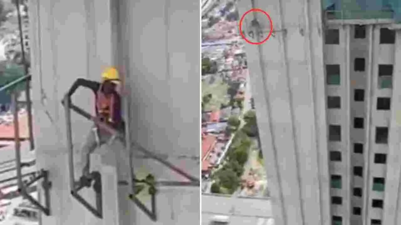 కూటి కోసం కోటి విద్యలు అంటారు. కుటుంబాన్ని పోషించుకోవడానికి కొందరు వ్యక్తులు ఎంతో కష్టపడతారు. ఉదయం నుంచి రాత్రి వరకు పని చేస్తూనే ఉంటారు. మరికొందరు ఉద్యోగం కోసం తమ ప్రాణాలనే పణంగా పెడతారు (Risk). ప్రాణాపాయ స్థితిలోనే పని చేస్తారు. అలాంటి వారిని ఎంతో మందిని చూస్తుంటాం. ప్రస్తుతం అలాంటిదే ఓ వీడియో సోషల్ మీడియాలో వైరల్ అవుతోంది. ఆ వీడియోలోని వ్యక్తి అతి ఎత్తైన బిల్డింగ్ (high building) మధ్యలో నిల్చుని పని చేస్తున్నాడు (Viral Video).