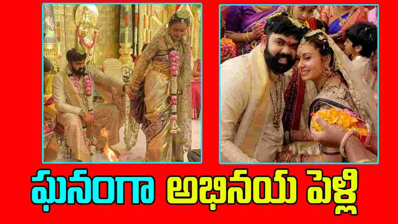 ప్రముఖ బహుభాషా నటి అభినయ మూడు ముళ్ల బంధంలోకి అడుగుపెట్టారు. చిన్ననాటి మిత్రుడ్ని పెళ్లి చేసుకున్నారు. హైదరాబాద్కు చెందిన వీ కార్తీక్ అనే వ్యక్తితో అభినయ ఏడడుగులు వేశారు. బుధవారం హైదరాబాద్, జూబ్లీహిల్స్లోని జేఆర్సీ కన్వెన్షన్ సెంటర్లో వీరి పెళ్లి వేడుక ఘనంగా జరిగింది. ఈ కార్యక్రమానికి బంధుమిత్రులు పెద్ద సంఖ్యలో హాజరయ్యారు. వధూవరులను ఆశీర్వదించారు. అభినయ, కార్తీక్ చిన్నప్పటి నుంచి మంచి స్నేహితులు. ఆ స్నేహం కాస్తా ప్రేమగా మారింది. గత కొన్నేళ్లుగా ప్రేమించుకుంటున్న వీరు పెద్దల అంగీకారంతో పెళ్లి బంధంలోకి అడుగుపెట్టారు.