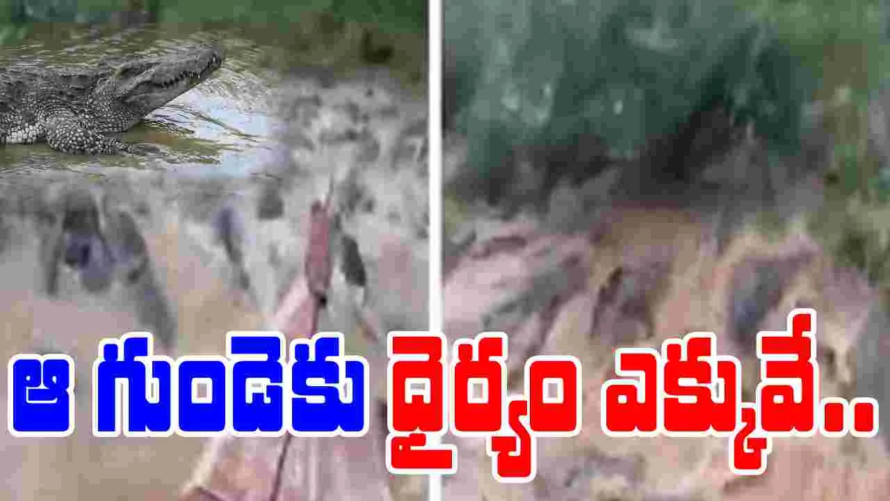 Crocodile Video: ఆ గుండెకు ధైర్యం ఎక్కువే.. నీటిలోనే మొసళ్లను ఎలా పరిగెత్తించాడో చూడండి..