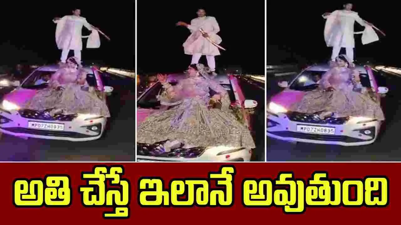 ఇందుకు సంబంధించిన పూర్తి వివరాల్లోకి వెళితే.. మధ్య ప్రదేశ్లోని గ్వాలియర్కు చెందిన ఓ జంటకు కొద్దిరోజుల క్రితం పెళ్లయింది. పెళ్లికి ముందు ఆ జంట ఓ పిచ్చి పని చేసింది. వధూవరులు ఇద్దరు కలిసి కారుపై ప్రమాదకరమైన స్టంట్ చేశారు. కారు రన్నింగ్లో ఉంది. వరుడు కారుపై నిలబడి ఖడ్గం తిప్పుతూ ఉన్నాడు. వధువు కారు బోనెట్పై కూర్చుని ఉంది. ఆమె ‘ ఇస్క్కి గలి విచ్ నో ఎంట్రీ ’ పాటకు తగ్గట్టు తన శరీరాన్ని ఆడిస్తూ ఉంది. రైల్ ఓవర్ బ్రిడ్జి దగ్గర ఈ సంఘటన జరిగింది. ఇందుకు సంబంధించిన వీడియో గత కొద్దిరోజుల నుంచి సోషల్ మీడియాలో తెగ చక్కర్లు కొడుతోంది.
