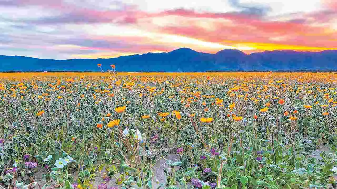 కాలిఫోర్నియా రాష్ట్రంలోని ‘ఆంజా బొర్రెగో’ ఎడారి ప్రస్తుత రూపమిది. ఎడారిలో పూల ఏరులేమిటని ఆశ్చర్యపోతున్నారా? అదే సూపర్ బ్లూమ్ మహిమ. ప్రపంచవ్యాప్తంగా కొన్ని ఎడారుల్లో మాత్రమే ఇలాంటి అద్భుతాలు జరుగుతాయి. ఆకు రాలే కాలం లేదా శీతాకాలంలో నేల లోపలి విత్తనాలు మొలకెత్తి, చిగుర్చుతాయి. ఎడారి పొద్దుతిరుగుడు పూలు, లిల్లీలు, ప్రైమ్రోజ్... తదితర పూలన్నీ ఈ సమయంలో పురివిప్పి నాట్యం చేస్తాయి.