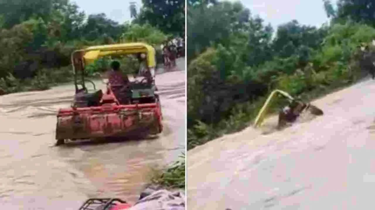 వైరల్ అవుతున్న ఆ వీడియో ప్రకారం.. భారీ వర్షాల కారణంగా ఓ కాలువలో వేసిన వంతెన పూర్తిగా మునిగిపోయింది. ఆ వంతెన మీద నుంచి భారీగా నీరు (Water Flood) ప్రవహిస్తోంది. ఆ నీటి ప్రవాహానికి భయపడి చాలా మంది బయటనే ఆగిపోయారు. అయితే ఓ ట్రాక్టర్ డ్రైవర్ మాత్రం ఆ ప్రవాహాన్ని లైట్గా తీసుకున్నాడు. సులభంగా దాటేయ్యగలననుకున్నాడు. ఆ నీటిలోకి ట్రాక్టర్ను పోనిచ్చాడు. అయితే మధ్యలోకి వెళ్లేసరికి ఆ నీటి ప్రవాహం కారణంగా ట్రాక్టర్ కొట్టుకుపోయింది. నీటిలో తిరగబడి పోయింది.