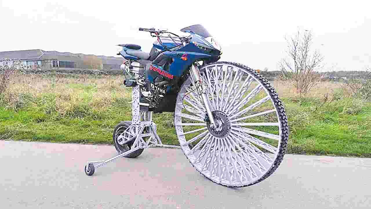 ఇంగ్లాండ్కు చెందిన యువ ఇంజనీర్ మిచెల్ ఎప్పటిలాగే ఓ రోజు యూట్యూబ్లో వీడియోలు చూస్తూ అలాగే నిద్రపోయాడట. కలలో తనకి సడెన్గా పెన్నీ-ఫర్తింగ్ సైకిల్ కనిపించింది. మెలకువ వచ్చాక తన ఆలోచనను ఒక బుక్లో రాసుకుని.. టెక్నాలజీ సాయంతో అందుకు తగినట్టుగా డిజైన్ చేయించుకున్నాడు. ఇంకేముంది తన మార్క్ కనబడేలా, కాస్త క్రేజీగా... తన ఇంట్లో ఉన్న 20 ఏళ్లనాటి యమహా ఆర్6 బైక్ని ఇలా సైకిల్గా మార్చేశాడు. దీని తయారీ కోసం స్టీల్తో అవసరమైన భాగాలన్నింటినీ సొంతంగా తయారు చేసుకున్నాడు.