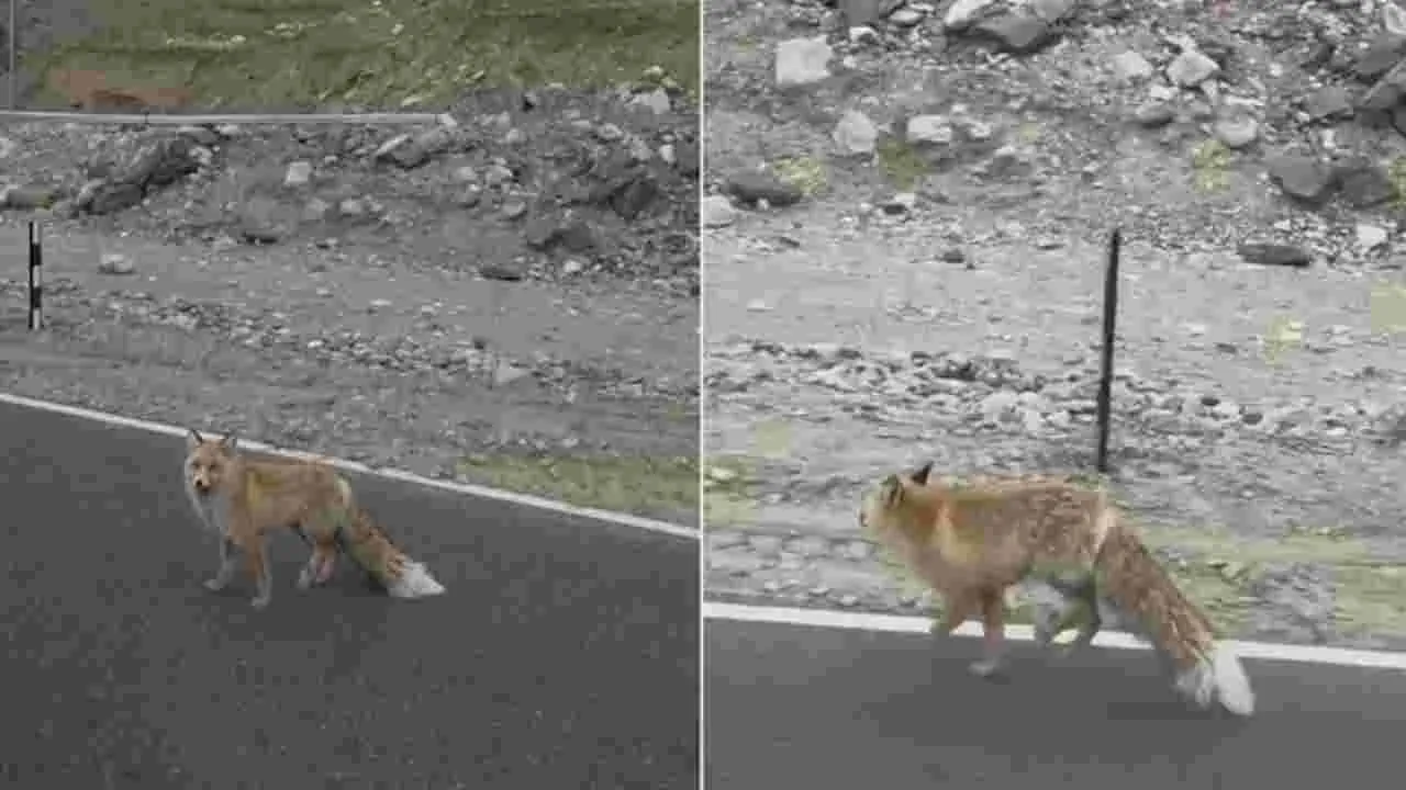 Himalayan Red Fox: హిమాలయాల్లో రహదారిపై నక్క.. అటవీ శాఖ అధికారి ఆందోళన