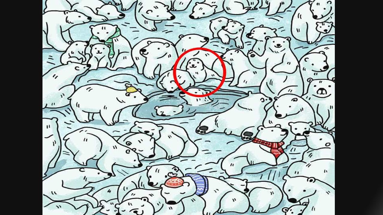 వైరల్ అవుతున్న పై ఫొటో మీ బ్రెయిన్ సామర్థ్యాన్ని టెస్ట్ చేసే ఆప్టికల్ ఇల్యూజన్ పజిల్. ఆ ఫొటోలో ఓ మంచు ప్రాంతంలో చాలా ధ్రువపు ఎలుగు బంట్లు కనబడుతున్నాయి. అయితే ఆ పోలార్ బీర్ల మధ్యలో ఓ సీల్ కూడా ఉంది. నిశితంగా పరిశీలిస్తేనే ఆ ఆ సీల్ ఎక్కడుందో మీకు తెలుస్తుంది. ఆ సీల్ ఎక్కడుందో కనుక్కోవడమే ఈ ఫొటోలోని ఛాలెంజ్. 6 సెకెన్ల వ్యవధిలో ఆ సీల్ను కనిపెడితే మీ పరిశీలనా శక్తికి హ్యాట్సాఫ్ చెప్పాల్సిందే.