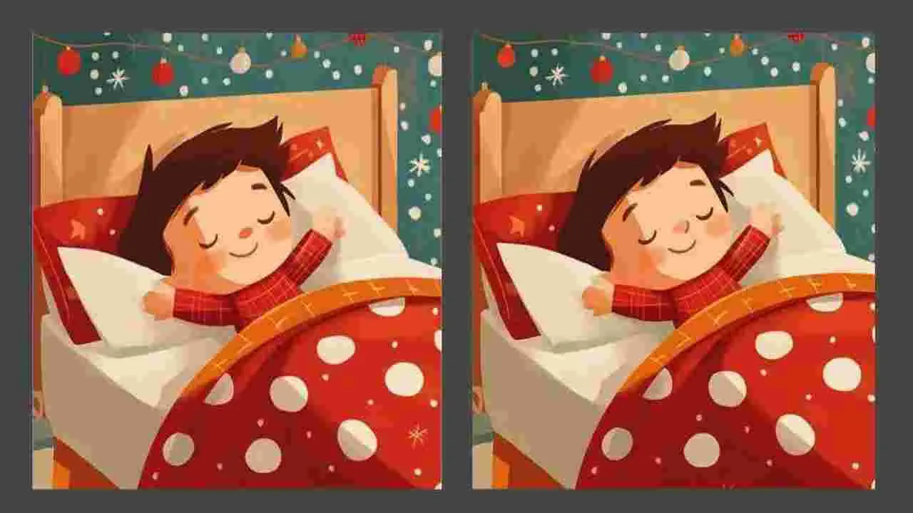 వైరల్ అవుతున్న ఆ ఫొటోలో ఓ కుర్రాడు తన ఇంటి బెడ్రూమ్లో నిద్రపోతున్నాడు. పక్క పక్కనే ఉన్న రెండు ఫొటోల్లోనూ అదే దృశ్యం ఉంది. అయితే ఆ రెండు ఫొటోల్లో మూడు చిన్న తేడాలున్నాయి. జాగ్రత్తగా గమనిస్తే ఆ రెండు ఫొటోల మధ్యనున్న తేడాలు కనబడతాయి. 25 సెకెన్ల వ్యవధిలో ఆ తేడాలను కనిపెడితే మీ బ్రెయిన్ స్పీడ్గా పని చేస్తున్నట్టు లెక్క. మీరు కనిపెట్టగలిగారా? అయితే కంగ్రాట్స్.. కనిపెట్టలేకపోయారా? అయితే కింది ఫొటో చూడండి.. ఆ రెండు ఫొటోల మధ్యనున్న తేడాలేంటో తెలుస్తుంది.