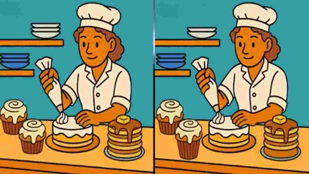 వైరల్ అవుతున్న ఆ ఫొటోలో ఓ బేకరీలో ఓ మహిళ కేక్ తయారు చేస్తోంది. ఆమె ముందు పలు కేక్లు ఉన్నాయి. పక్క పక్కనే ఉన్న రెండు ఫొటోల్లోనూ అదే దృశ్యం ఉంది. అయితే ఆ రెండు ఫొటోల్లో మూడు చిన్న తేడాలున్నాయి. జాగ్రత్తగా గమనిస్తే ఆ రెండు ఫొటోల మధ్యనున్న తేడాలు కనబడతాయి. 25 సెకెన్ల వ్యవధిలో ఆ తేడాలను కనిపెడితే మీ బ్రెయిన్ స్పీడ్గా పని చేస్తున్నట్టు లెక్క. మీరు కనిపెట్టగలిగారా? అయితే కంగ్రాట్స్.. కనిపెట్టలేకపోయారా? అయితే కింది ఫొటో చూడండి.. ఆ రెండు ఫొటోల మధ్యనున్న తేడాలేంటో తెలుస్తుంది.