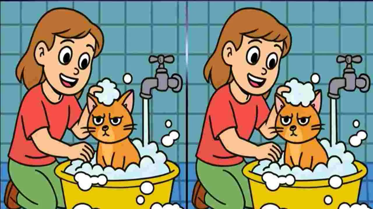 వైరల్ అవుతున్న ఆ ఫొటోలో ఓ బాలిక తన పిల్లికి స్నానం చేయిస్తోంది. పక్క పక్కనే ఉన్న రెండు ఫొటోల్లోనూ అదే దృశ్యం ఉంది. అయితే ఆ రెండు ఫొటోల్లో మూడు చిన్న తేడాలున్నాయి. జాగ్రత్తగా గమనిస్తే ఆ రెండు ఫొటోల మధ్యనున్న తేడాలు కనబడతాయి. 33 సెకెన్ల వ్యవధిలో ఆ తేడాలను కనిపెడితే మీ బ్రెయిన్ స్పీడ్గా పని చేస్తున్నట్టు లెక్క. మీరు కనిపెట్టగలిగారా? అయితే కంగ్రాట్స్.. కనిపెట్టలేకపోయారా? అయితే కింది ఫొటో చూడండి.. ఆ రెండు ఫొటోల మధ్యనున్న తేడాలేంటో తెలుస్తుంది.