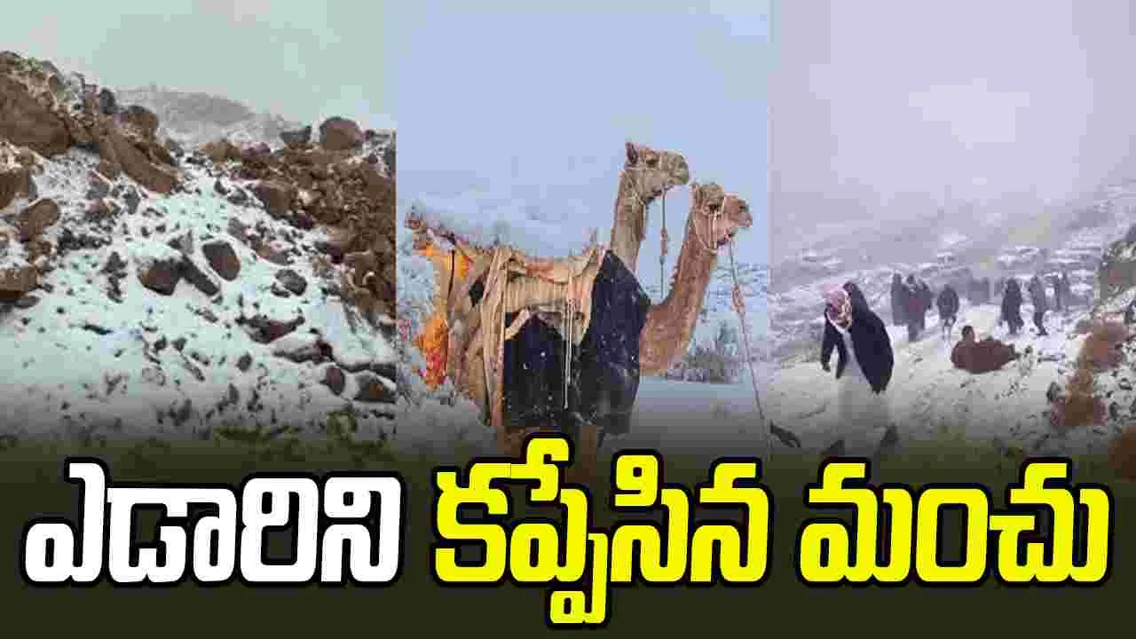 ఎప్పుడూ భగ భగమంటూ కనిపించే సౌదీ ఎడారి(Saudi Arabia)ని ఇప్పుడు మంచు(Snow) దుప్పటి కప్పేసింది. వింటానికి ఆశ్చర్యంగా ఉన్నా సోమవారం ఉదయం అక్కడ కనిపించిన అరుదైన దృశ్యాల(Rare sightings)ను చూసి ప్రపంచ వ్యాప్తంగా జనాలు ఇదెక్కడి చోద్యం అంటున్నారు. సౌదీ అరేబియాలోని ఉత్తర ప్రాంతాలలో 30 సంవత్సరాల తర్వాత ఇక్కడ భారీ వర్షాలు కురుస్తున్నాయి. ఈ నేపథ్యంలోనే తెల్లవారుజామున ఉష్ణోగ్రతలు జీరో(Temparatures)కి పడిపోతున్నాయి. దీంతో ఉత్తర, మధ్య ప్రాంతంలో వింతైన వాతావరణ (Strange weather) పరిస్థితులు ఏర్పడ్డాయని అంటున్నారు.