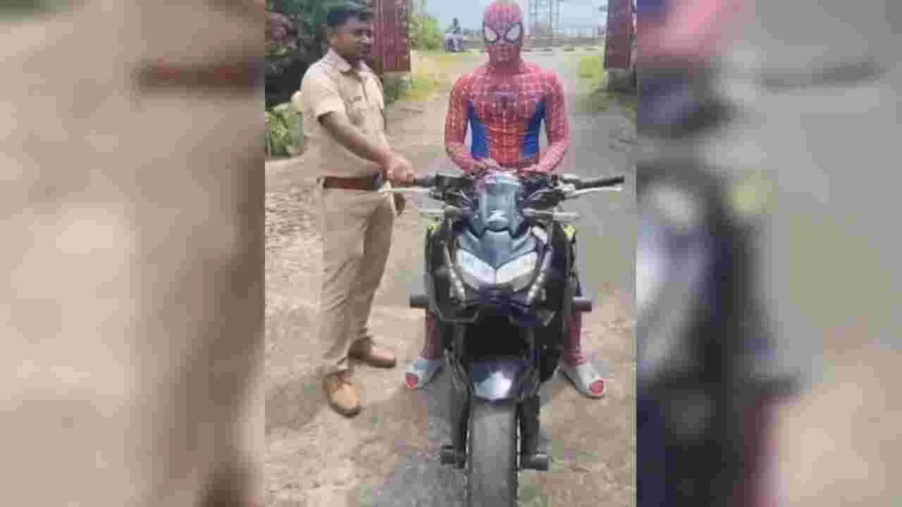 స్పైడర్ మ్యాన్ డ్రెస్ వేసుకుని నడి రోడ్డుపై బైక్తో స్టంట్స్ చేయబోయిన ఓ వ్యక్తికి ఒడిశా పోలీసులు ఊహించని షాకిచ్చారు. అతడి బైక్ను సీజ్ చేయడంతో పాటు ఏకంగా రూ.15 వేల జరిమానా విధించారు.