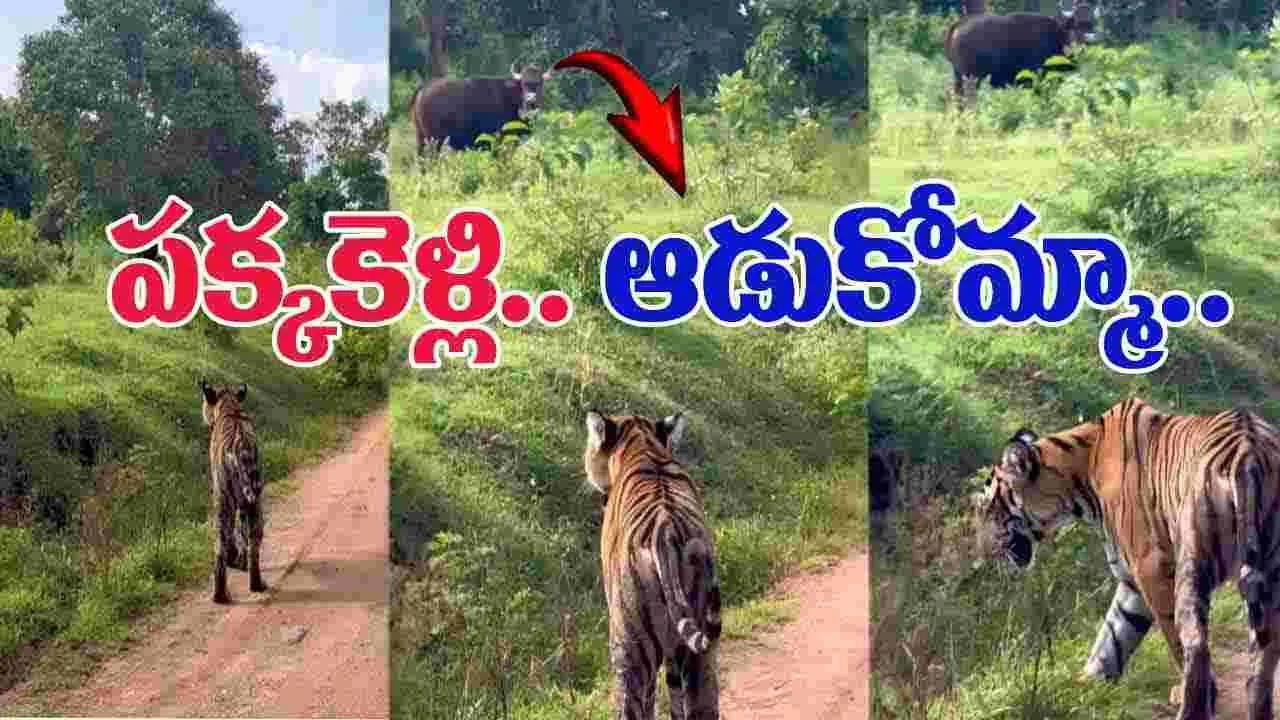 సోషల్ మీడియాలో ఓ వీడియో (Viral Video) తెగ వైరల్ అవుతోంది. వాహనాల్లో జంగిల్ సఫారీకి (Jungle Safari) వెళ్లిన పర్యాటకులకు ఓ అరుదైన దృశ్యం కనిపించింది. దారిలో ఓ పులి వేట కోసం వెతుకుతూ నిలబడి చూస్తోంది. పులిని చూడగానే పర్యాటకుల వాహనాలు అటూ, ఇటూ దూరంగా ఆగిపోయాయి. రోడ్డు పక్కన నిలబడ్డ పులికి.. కాస్త దూరంలో అడవి దున్నలు (Gaur) కనిపించాయి.