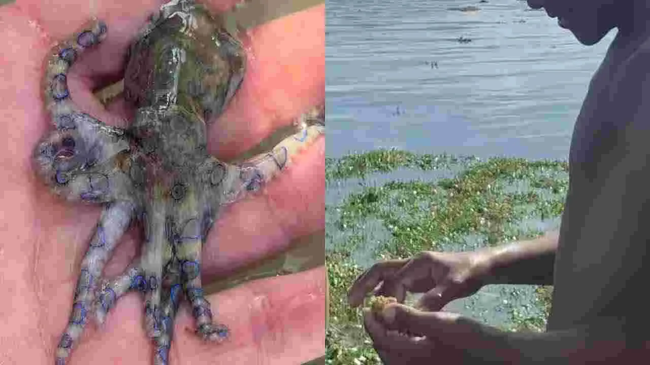 అయితే, ఆ వ్యక్తికి ఆ చిన్న ఆక్టోపస్ పిల్ల ఎంత ప్రమాదమో తెలీదు. అది కుడితే న్యూరోటాక్సిన్స్ శరీరంలోకి వెళ్లి నాడీ వ్యవస్థను దెబ్బ తీస్తాయి. ప్రాణాలు కూడా పోయే అవకాశం ఉంది. ఆ విషయం తెలీక చాలా సేపు దాన్ని చేతుల్లో పట్టుకున్నాడు. ప్రస్తుతం ఇందుకు సంబంధించిన వీడియో ఒకటి సోషల్ మీడియాలో వైరల్గా మారింది. వీడియోపై స్పందిస్తున్న నెటిజన్లు.. ‘చావును చేతిలో పట్టుకున్నావు. జాగ్రత్త బ్రదర్’..‘అది బేబీ ఆక్టోపస్ కాదురా బాబు. దాన్ని పట్టుకుని కూడా నువ్వు ఎలా ప్రాణాలతో ఉన్నావు’.. ‘ఈ సృష్టిలో అత్యంత విషపూరితమైన జీవి అదే. దానితో ఆటలు ఆడుతున్నావా’ అంటూ కామెంట్లు చేస్తున్నారు.