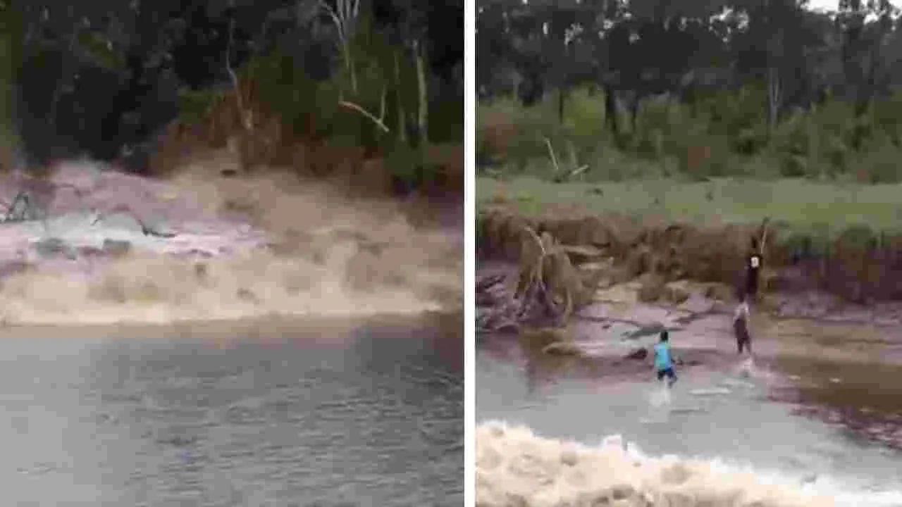మనం ఏమి కోల్పోయినా తిరిగి పొందే వీలుంటుంది. అయితే ప్రాణాలు కోల్పోతే మాత్రం అంతా అయిపోయినట్టే. అందుకే ప్రతి నిమిషం అప్రమత్తంగా వ్యవహరిస్తూ ప్రమాదాలకు దూరంగా ఉండాలి. ప్రస్తుతం సోషల్ మీడియాలో వైరల్ అవుతున్న వీడియో చూస్తే ఆశ్చర్యపోకతప్పదు. ఆ వీడియోలో కుర్రాళ్లు త్రుటిలో తమ ప్రాణాలను కాపాడుకున్నారు. ఏమాత్రం తేడా జరిగినా వారందరూ భారీ ప్రవాహంలో కొట్టుకుని పోయి ప్రాణాలను కోల్పోయి ఉండేవారు (Viral Video).