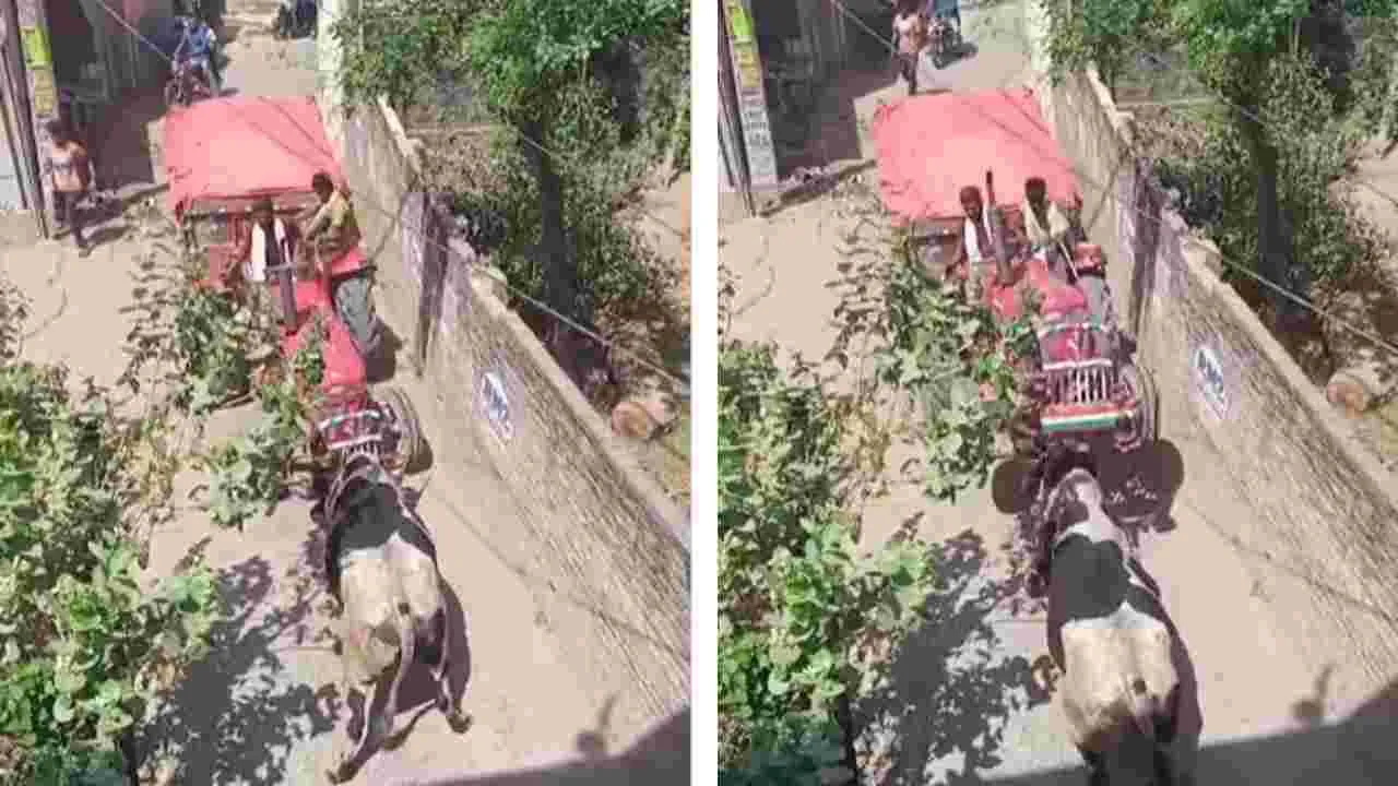 సాధారణంగా బసవన్నలు రోడ్ల మీద ఎవరి జోలికీ వెళ్లకుండా నడుచుకుంటూ వెళ్లిపోతుంటాయి. అయితే వాటికి కోపం వస్తే మాత్రం పరిస్థితి చాలా భయంకరంగా ఉంటుంది. ప్రస్తుతం అలాంటిదే ఓ వీడియో సోషల్ మీడియాలో వైరల్ అవుతోంది.