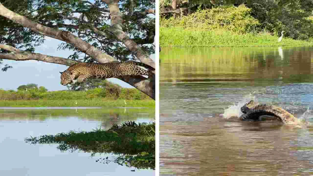 నీటిలోని మొసలి నోటికి చిక్కితే ప్రాణాల మీద ఆశలు వదిలేసుకోవాల్సిందే. అయితే అలాంటి మొసలికి ఓ చిరుత పులి చుక్కలు చూపించింది. నీటిలోకి దూకి మరీ మొసలిని మట్టుబెట్టింది. ఆ థ్రిల్లింగ్ హంటింగ్ వీడియో ప్రస్తుతం సోషల్ మీడియాలో వైరల్గా మారింది.