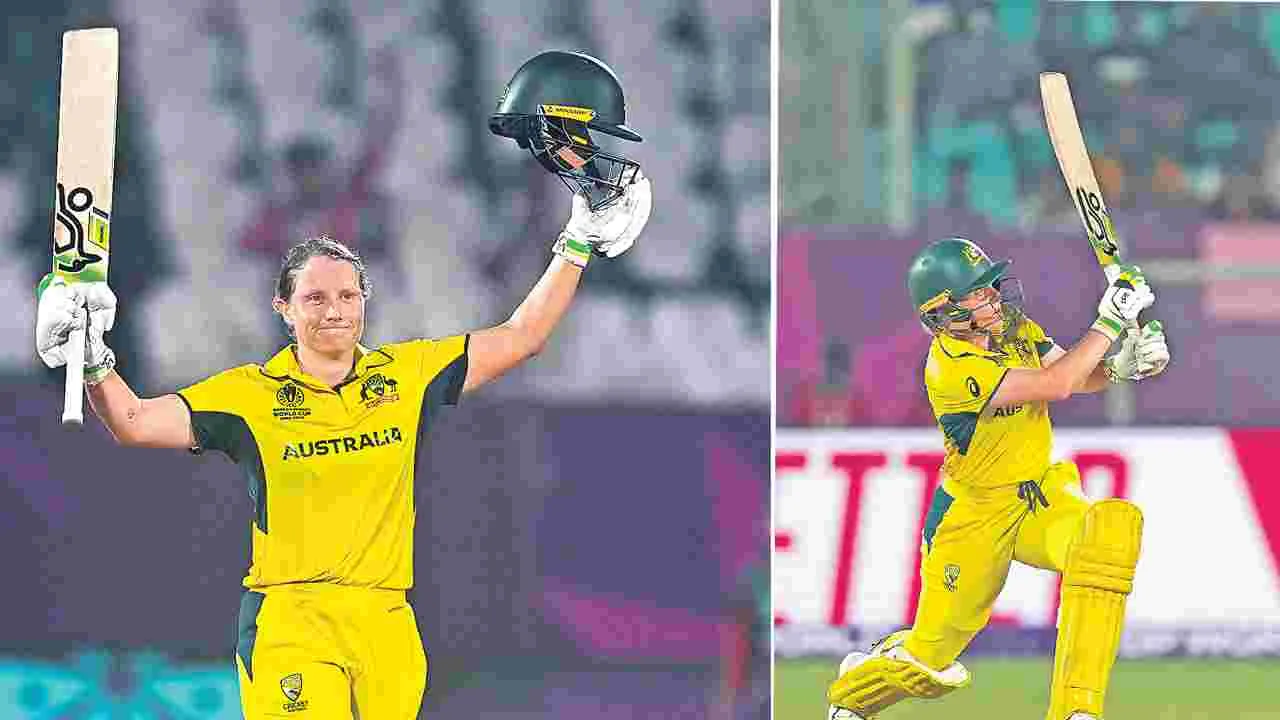 విశాఖపట్నం స్పోర్ట్స్ (ఆంధ్రజ్యోతి): మహిళల వన్డే వరల్డ్క్పలో డిఫెండింగ్ చాంపియన్ ఆస్ట్రేలియా అదరగొడుతోంది. అజేయ ఆటతీరుతో దూసుకెళ్తున్న ఈ జట్టు సెమీస్ బెర్త్ను ఖాయం చేసుకుంది. గురువారం బంగ్లాదేశ్తో జరిగిన మ్యాచ్లో కెప్టెన్ అలీసా హీలీ (77 బంతుల్లో 20 ఫోర్లతో 113 నాటౌట్) వరుసగా రెండో శతకం పూర్తి చేయగా, లిచ్ఫీల్డ్ (72 బంతుల్లో 12 ఫోర్లు, 1 సిక్స్తో 84 నాటౌట్) సహకరించింది. దీంతో ఏకంగా 10 వికెట్ల తేడాతో ఘనవిజయం సాధించిన ఆసీస్ 9 పాయింట్లతో టాప్లో నిలిచింది. గురువారం జరిగిన ఈ మ్యాచ్లో టాస్ గెలిచి బ్యాటింగ్కు దిగిన బంగ్లాదేశ్ 50 ఓవర్లలో 9 వికెట్లకు 198 పరుగులు సాధించింది. శోభన (66 నాటౌట్), రుబియా హైదర్ (44) రాణించడంతో ఆ మాత్రం స్కోరైనా అందుకోగలిగింది. మహిళల క్రికెట్లో ఆసీ్సపై బంగ్లా తరఫున అత్యధిక వ్యక్తిగత స్కోరు శోభనదే కావడం విశేషం. అటు బౌలింగ్లో లెగ్ స్పిన్నర్ అలన కింగ్ (10-4-18-2) పొదుపైన బౌలింగ్తో అదరగొట్టింది. వేర్హమ్, సదర్లాండ్, గార్డ్నర్లకు రెండేసి వికెట్లు దక్కాయి. ఆ తర్వాత ఛేదనలో ఆస్ట్రేలియా 24.5 ఓవర్లలో వికెట్ నష్టపోకుండా 202 పరుగులతో నెగ్గింది. ఓపెనర్లు హీలీ, లిచ్ఫీల్డ్ చెలరేగడంతో పవర్ప్లేలోనే జట్టు 78 పరుగులు సాధించింది. 67 రన్స్ దగ్గర హీలీ సులువైన క్యాచ్ను ఫర్గానా వదిలేసింది. ఇక వరల్డ్క్పలో రెండో ఫాస్టెస్ట్ (73 బంతుల్లో) సెంచరీ పూర్తి చేసిన హీలీ ఆ వెంటనే హ్యాట్రిక్ ఫోర్లు బాదగా, అటు 25వ ఓవర్లో లిచ్ఫీల్డ్ రెండు వరుస ఫోర్లతో మ్యాచ్ను ముగించింది.