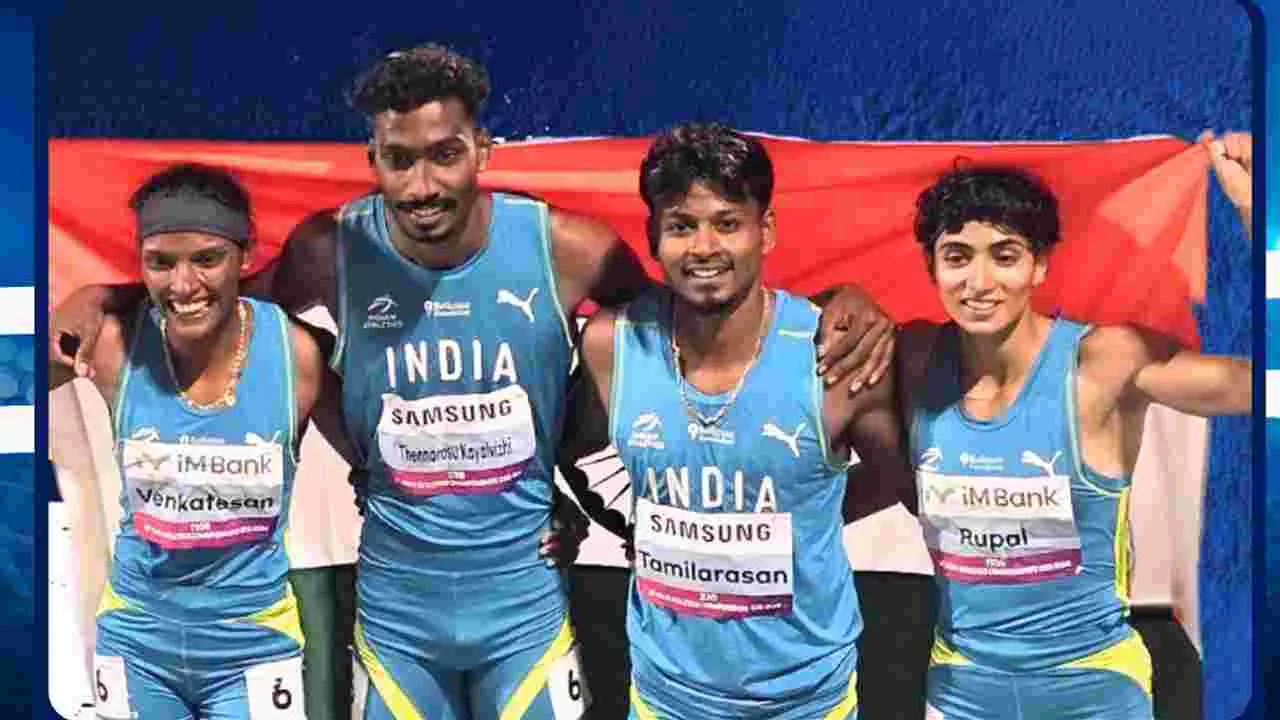 గుమి (దక్షిణ కొరియా): ఆసియా అథ్లెటిక్స్ చాంపియన్షి్పలో భారత క్రీడాకారులు వరుసగా రెండోరోజూ సత్తా చాటారు. బుధవారం జరిగిన పోటీల్లో ఓ స్వర్ణం సహా ఆరు పతకాలు కొల్లగొట్టారు. 4గీ400 మీటర్ల మిక్స్డ్ రిలే టీమ్ ఈవెంట్లో రూపల్ చౌదరి, సంతోష్ కుమార్, విశాల్, సుభా వెంకటేశన్లతో కూడిన భారత జట్టు ఫైనల్లో విజేతగా నిలిచి టైటిల్ నిలబెట్టుకుంది. భారత బృందం 3:18.12 సెకన్లలో రేసు ముగించి పసిడి పతకం దక్కించుకుంది. కాగా.. చైనా (3:20.52 సె), శ్రీలంక (3:21.95 సె) జట్లు వరుసగా రెండు, మూడు స్థానాల్లో నిలిచి రజతం, కాంస్య పతకాలతో సరిపెట్టుకున్నాయి. ఇక, స్వర్ణం నెగ్గిన భారత మిక్స్డ్ టీమ్లో సభ్యురాలైన రూపల్ చౌదరి వ్యక్తిగత 400 మీటర్ల రేసులో రజతం అందుకుంది. డెకాథ్లాన్లో భారత అథ్లెట్ తేజస్విన్ శంకర్ 7618 పాయింట్లు స్కోరు చేసి రజతం నెగ్గాడు. పురుషుల ట్రిపుల్ జంప్లో ప్రవీణ్ చిత్రవేల్, మహిళల 1500 మీటర్ల రేసులో పూజ రజత పతకాలు సాధించారు. పురుషుల 1500 మీటర్ల రేసులో యూనస్ షా కాంస్యం దక్కించుకున్నాడు.
