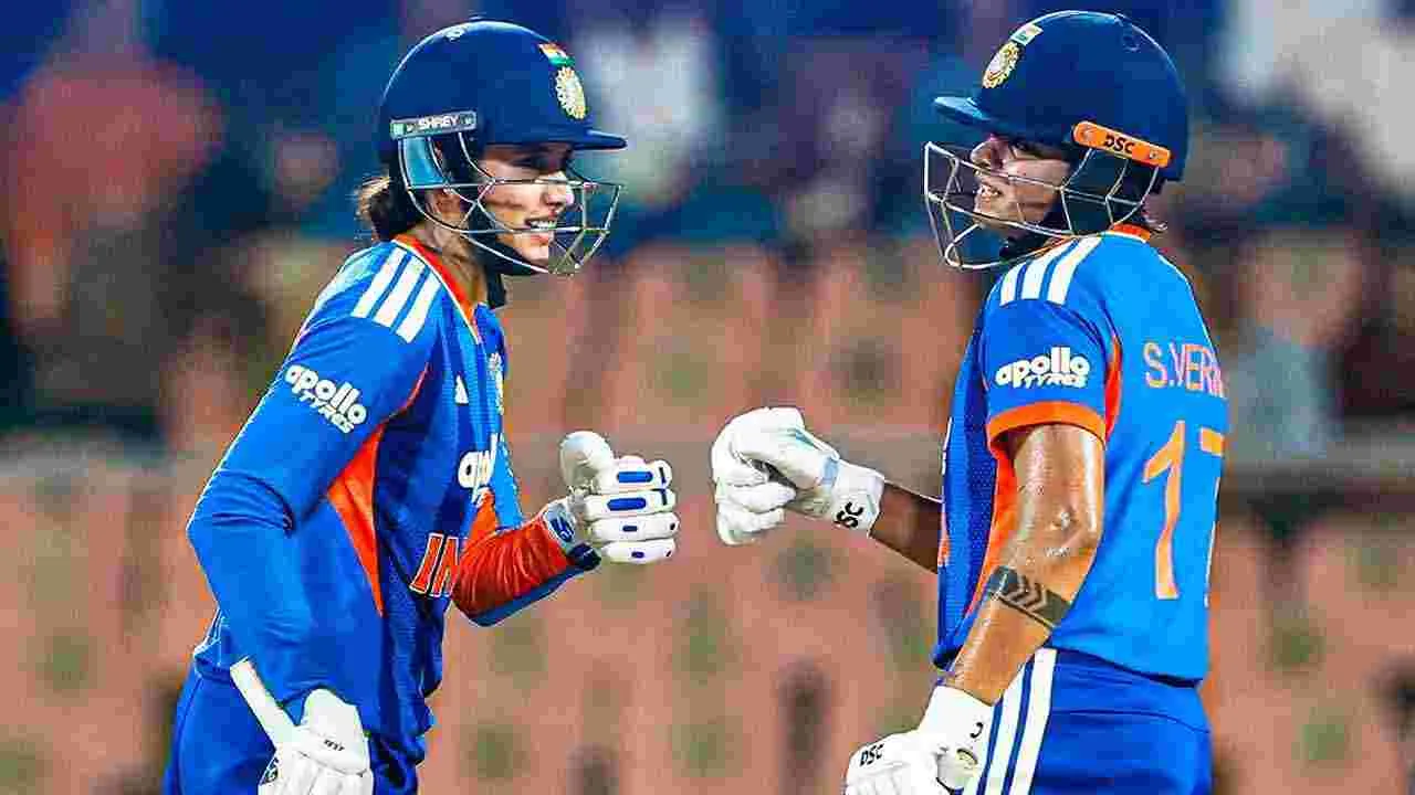 ఓపెనర్లు స్మృతి మంధాన(80; 48 బంతుల్లో 11 ఫోర్లు, 3 సిక్సులు), షెఫాలీ వర్మ(79; 46 బంతుల్లో 12 ఫోర్లు, 1 సిక్స్) యధావిథిగా దంచికొట్టారు. అద్భుత ప్రదర్శనతో హాఫ్ సెంచరీలు నమోదు చేశారు. తృటిలో తమ సెంచరీలను మిస్ చేసుకున్నారు. వీరిద్దరూ తొలి వికెట్కు ఏకంగా 162 పరుగుల రికార్డు భాగస్వామ్యాన్ని నెలకొల్పారు. రిచా ఘోష్(40*), హర్మన్ ప్రీత్ కౌర్(16*) నాటౌట్గా నిలిచారు. వీరిద్దరూ కలిసి 52 పరుగుల భాగస్వామ్యాన్ని నెలకొల్పారు. శ్రీలంక బౌలర్లలో మాల్షా షెహనీ, నిమిషా మదుషని చెరో వికెట్ తీసుకున్నారు.