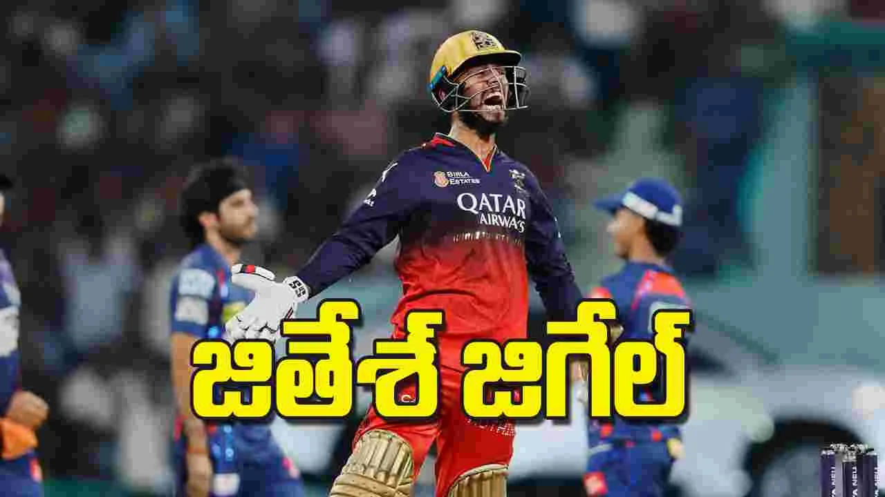 ముందు విరాట్.. ఆ తర్వాత జితేశ్: భారీ ఛేదనను ఆర్సీబీ సజావుగానే ఆరంభించింది. మొదట ఓపెనర్ విరాట్ కోహ్లీ విజయంపై ఆశలు రేకెత్తించగా.. జితేశ్ తుఫాన్ ఇన్నింగ్స్తో ముగించాడు. రెండో ఓవర్లో విరాట్ నాలుగు ఫోర్లతో ఆకట్టుకున్నాడు. మరో ఓపెనర్ సాల్ట్ ఆరో ఓవర్లో వెనుదిరిగినా పవర్ప్లేలో జట్టు 66/1 స్కోరుతో నిలిచింది. ఇక ఎనిమిదో ఓవర్లో రజత్ (14), లివింగ్స్టోన్ (0)లను పేసర్ ఓరౌర్కీ అవుట్ చేయడంతో 90/3తో తడబడినట్టు కనిపించింది. అయితే మయాంక్ పదో ఓవర్లో హ్యాట్రిక్ ఫోర్లతో రన్రేట్ తగ్గకుండా చూశాడు. 27 బంతుల్లో అర్ధసెంచరీ సాధించాక విరాట్ను పేసర్ అవేశ్ వెనక్కి పంపాడు. ఈ సమయంలో మయాంక్-జితేశ్ జోడీ వేగంగా ఆడే ప్రయత్నం చేసింది. ముఖ్యంగా జితేశ్ 14వ ఓవర్లో 6,4.. తర్వాతి ఓవర్లో 4,6,4,4తో పరుగుల వరద పారించాడు. 17వ ఓవర్లో హైడ్రామా నెలకొంది. తొలి బంతికే జితేశ్ అవుటైనా అది నోబ్గా తేలడంతో బతికిపోయాడు. ఇక అదే ఓవర్లో స్పిన్నర్ దిగ్వేష్ అతడిని మన్కడింగ్ కూడా చేశాడు. కానీ పంత్ అప్పీల్ను వెనక్కితీసుకోవడంతో నాటౌట్గా ప్రకటించారు. ఓ సిక్సర్తో 22 బంతుల్లోనే జితేశ్ హాఫ్ సెంచరీ కూడా పూర్తయ్యింది. 18వ ఓవర్లో అతడి 4,4,6,6తో 21 రన్స్ రావడంతో సమీకరణం 12 బంతుల్లో ఏడు పరుగులకు మారింది. దీంతో బెంగళూరు మరో 8 బంతులుండగానే నెగ్గింది.