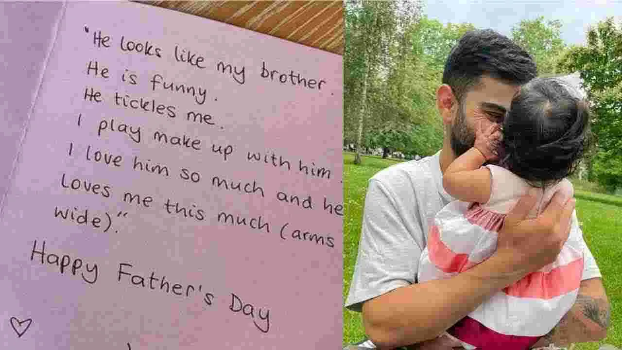 ఫాదర్స్ డేను పురస్కరించుకొని కోహ్లీకి అతడి కుమార్తె వామిక ముద్దుముద్దుగా శుభాకాంక్షలు చెప్పింది. చేతితో రాసిన నోట్పై...