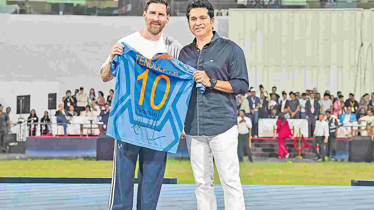 మెస్సీ ఎంతో కూల్గా కనిపించాడు. రెడ్ కార్పెట్పై నడుచుకుంటూ వస్తూనే ఫ్యాన్స్కు చేతులు ఊపుతూ పలకరించాడు. ఫడణవీస్, సచిన్తోపాటు బాలీవుడ్ నటులు అజయ్ దేవగన్, టైగర్ ష్రాఫ్ తదితరులు కూడా మెస్సీతో కలిశారు. ఎగ్జిబిషన్ మ్యాచ్లో ఆడే ప్లేయర్లను పలకరించిన అనంతరం.. హైదరాబాద్ తరహాలో ఫుట్బాల్ను స్టాండ్స్లోకి కొట్టిన లియోనెల్, సువారెజ్, డి పాల్ ఆ తర్వాత మైదానం అంతా కలియదిరిగారు. ఆ తర్వాత 7-7 ఎగ్జిబిషన్ మ్యాచ్ జరిగింది. యువ ఆటగాళ్లతో ప్రాక్టీస్ చేయించారు. వాంఖడే కంటే ముందు పడేల్ కప్ ఈవెంట్ కోసం బ్రబౌర్న్ స్టేడియాన్ని మెస్సీ సందర్శించాడు.