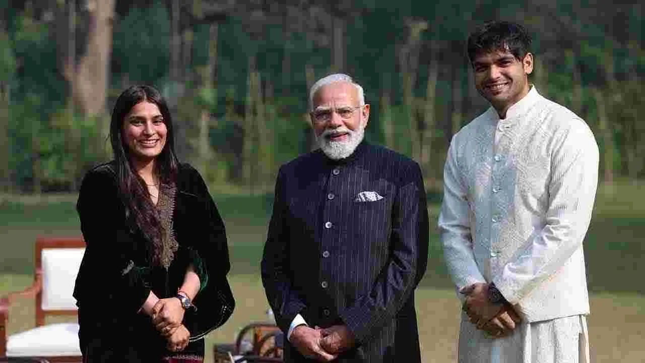 స్టార్ జావెలిన్ త్రోయర్ నీరజ్ చోప్రా, అతడి భార్య హిమని మంగళవారం ప్రధాని నరేంద్ర మోదీని కలుసుకొన్నారు...