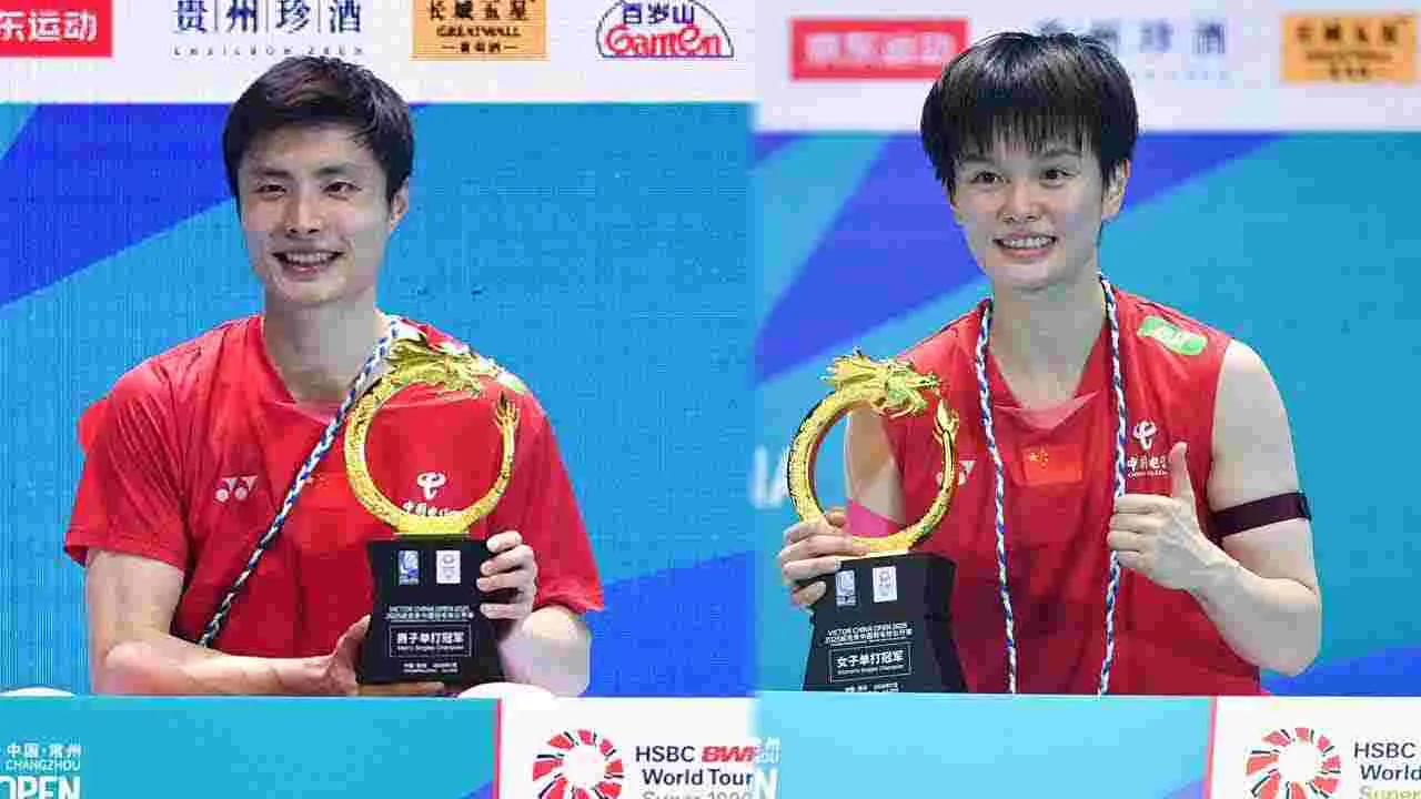 చాంగ్జౌ: చైనా ఓపెన్ సూపర్ 1000 బ్యాడ్మింటన్ టోర్నీ పురుషులు, మహిళల సింగిల్స్ టైటిళ్లను షి యుకి, వాంగ్ జియీ గెలుచుకున్నారు. ఆదివారం జరిగిన పురుషుల సింగిల్స్ ఫైనల్లో యుకి (చైనా) 14-21, 21-14, 21-15తో తన దేశానికే చెందిన వాంగ్ జెన్సింగ్ను ఓడించి విజేతగా నిలిచాడు. మహిళల సింగిల్స్ తుది పోరులో డిఫెండింగ్ చాంపియన్ వాంగ్ జియీ 21-18, 21-13తో హాన్ ఈ (చైనా) చిత్తుచేసి టైటిల్ నిలబెట్టుకుంది. మహిళల డబుల్స్ ఫైనల్లో టాప్ సీడ్ లియు/టాన్ (చైనా) జంట 24-22, 17-21, 21-14తో జాంగ్/జియా (చైనా) ద్వయంపై నెగ్గి చాంపియన్గా నిలిచింది. పురుషుల డబుల్స్ తుది పోరులో ఫజర్/మహ్మద్ (ఇండోనేసియా) జోడీ 21-14, 21-15తో చియా /సో (మలేసియా) జంటపై నెగ్గి టైటిల్ అందుకుంది.