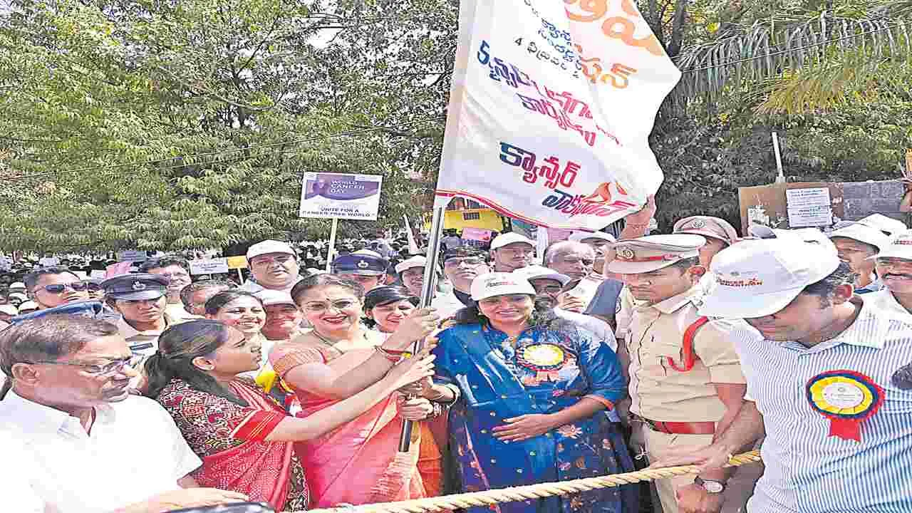 ప్రతి ఒక్కరూ క్యాన్సర్పై అవగాహన కలిగి ఉండాలని సినీనటి గౌతమి సూచించారు. ప్రపంచ క్యా న్సర్ దినాన్ని పురస్కరించుకొని ప్రతిమ ఫౌండేషన్ ఆధ్వర్యంలో హనుమకొండ పబ్లిక్ గార్డెన్ నుంచి కాళోజీ కళాక్షేత్రం వరకు సుమారు రెండు