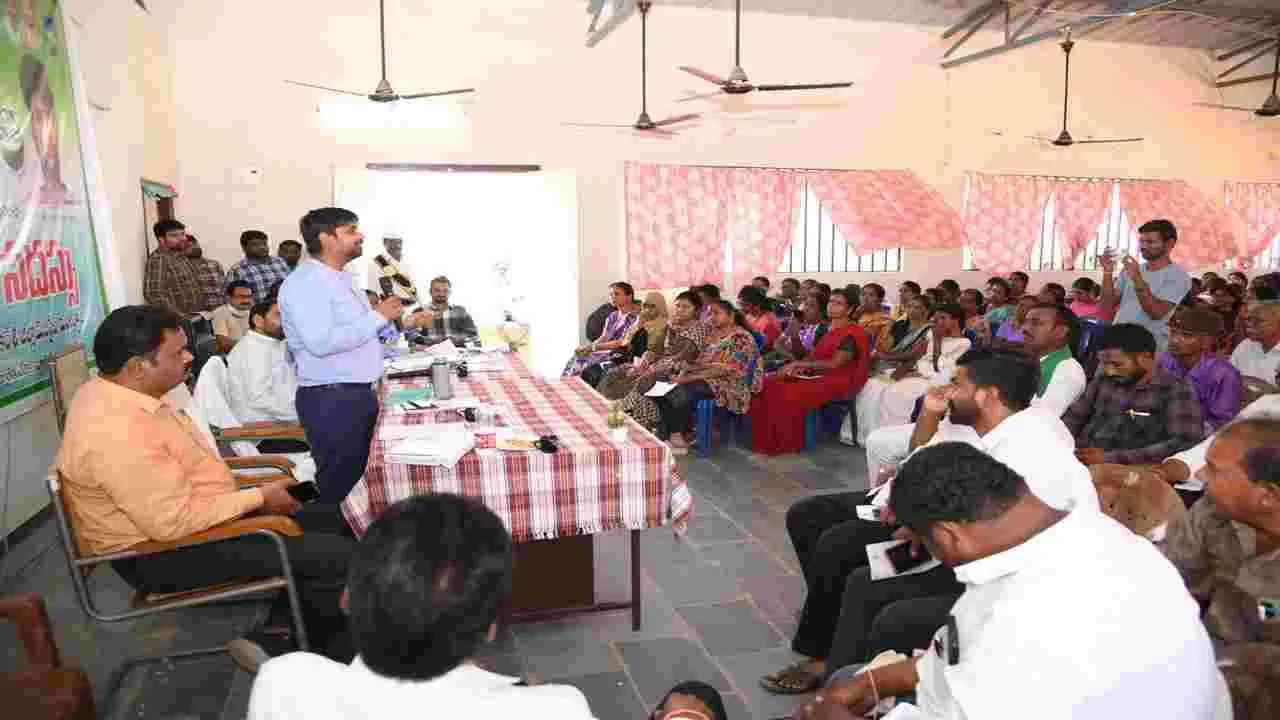 దండేపల్లి(లక్షెట్టిపేట)ఏప్రిల్ 17(ఆంధ్రజ్యోతి): భూ సమస్యలను పరిష్కరించి ఎటువంటి వివాదా లకు తావు లేకుండా ఉండేందుకే భూభారతీ చట్టా న్ని ప్రభుత్వం తీసుకవచ్చిందని కలెక్టర్ కుమార్ దీ పక్ అన్నారు. లక్షెట్టిపేటలో వ్యవసాయ మార్కెట్ కమిటి యార్డ్లో గురువారం రైతు వేదికలో భూభా రతీ నూతన చట్టంపై ఏర్పాటు చేసిన అవగాహన సదస్సుకు అదనపు కలెక్టర్ సభావత్ మోతీలాల్ ఆర్డీవో శ్రీనివాస్రావు హాజరై అవగాహన కల్పిం చారు. కలెక్టర్ మాట్లాడుతూ ధరణి పోర్టల్ స్థానం లో కాంగ్రెస్ ప్రభుత్వం భూ భారతీ నూతన ఆర్వో ఆర్ చట్టం తీసుకవచ్చిందన్నారు. ఈచట్టంతో ఒకే రోజు రిజిస్ట్రేషన్తో పాటు మ్యుటేషన్ సౌకర్యం కల్పి స్తున్నట్లు ఆయన వివరించారు. రిజిస్ట్రేషన్ మ్యుటే షన్ సంబంధించిన భూమి సర్వే చేసి మ్యాప్ త యారు చేస్తారని పేర్కొన్నారు. తహసీల్దార్ ద్వారా భూ రిజిస్ట్రేషన్ అయిన వెంటనే మ్యూటేషన్ చేస్తా రని తద్వారా నెలల తరబడి మ్యూటేషన్ కోసం తిర గడం ప్రత్యేకంగా దరఖాస్తు చేసుకోవడం ఉండద న్నారు. రికార్డుల్లో తప్పులు సవరణకు అవకాశం ఉంటుందన్నారు. పెండింగ్లో సాదా బైనామా దరఖాస్తులను పరిష్కరించడం కోసం ఈచట్టం ఎం తో ఉపయోగ పడుతుందన్నారు. వారసత్వంగా వ చ్చిన భూములకు విరాసత్ చేసే ముందు నిర్ణీత కాలంలో సమగ్ర విచారణ చేపట్టి భూమి హక్కులు ఏవిధంగా సంక్రమించినా, ముటేషన్ చేసి రికార్డులో నమోదు చేస్తామన్నారు. ప్రభుత్వ ఆదేశాల మేరకు ఒక మండలాన్ని ఎంపిక చేసి మండలంలోని అన్ని రకాల సమస్యలను తెలుసుకోని నిర్ణీత గడువులో పరిష్కరిస్తామన్నారు. వచ్చేజూన్ నుంచి పూర్తి సా ్థయిలో రాష్ట్ర వ్యాప్తంగా అమలు చేయనున్నట్లు తె లిపారు. అనంతరం లక్షెట్టిపేటలో నూతనంగా నిర్మి స్తున్న ప్రభుత్వ జూనియర్, డిగ్రీ కళాశాల భవన ని ర్మాణ పనులను ఆయన పరిశీలించారు. విద్యారం గ అభివృద్ధి దిశగా రాష్ట్ర ప్రభుత్వం ప్రత్యేక కృషి చే స్తుందన్నారు. ఈక్రమంలో నిర్మాణ పనులను వేగ వంతం చేసి నాణ్యతతో కూడిన నిర్మాణ పనులు త్వరితగతిన పూర్తి చేసే విధంగా చర్యలు తీసుకోవా లన్నారు. కార్యక్రమంలో తహసిల్దార్ దీలిప్కుమార్, ఎంపిడివో సరోజ, నాయకులు, రైతులు, వివిధ శాఖ ల అధికారులు, సిబ్బంది ఉన్నారు.
