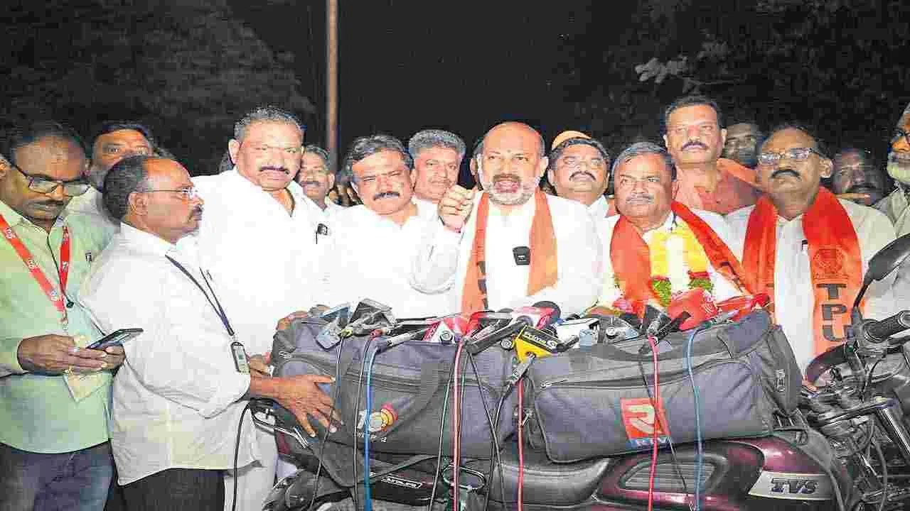 భగత్నగర్, నల్గొండ, మార్చి3(ఆంధ్రజ్యోతి): కరీంనగర్ ఉపాధ్యాయ ఎమ్మెల్సీ ఎన్నికల్లో బీజేపీ అభ్యర్థి మల్క కొమురయ్య గెలుపుతో ప్రధాన ప్రతిపక్షం బీజేపీయే అని తేలిందని కేంద్ర హోం శాఖ సహాయమంత్రి బండి సంజయ్కుమార్ అన్నారు. సోమవారం కరీంనగర్, నిజామాబాద్, ఆదిలాబాద్, మెదక్ టీచర్ ఎమ్మెల్సీగా గెలుపొందిన మల్క కొమురయ్య ధ్రువీకరణ పత్రాన్ని అందుకున్న అనంతరం ఆయన్ను బండి అభినందించారు. తపస్ చిన్న సంస్థ అని హేళన చేసిన వారికి చెంప పెట్టులా తీర్పు వచ్చిందన్నారు. బీఆర్ఎస్, కాంగ్రెస్ కుమ్మక్కై బీజేపీ అభ్యర్థి కొమురయ్యను ఓడించాలని కుట్రలు చేశాయన్నారు. కిషన్రెడ్డి నాయకత్వంలో ఇది మూడో విజయమన్నారు.