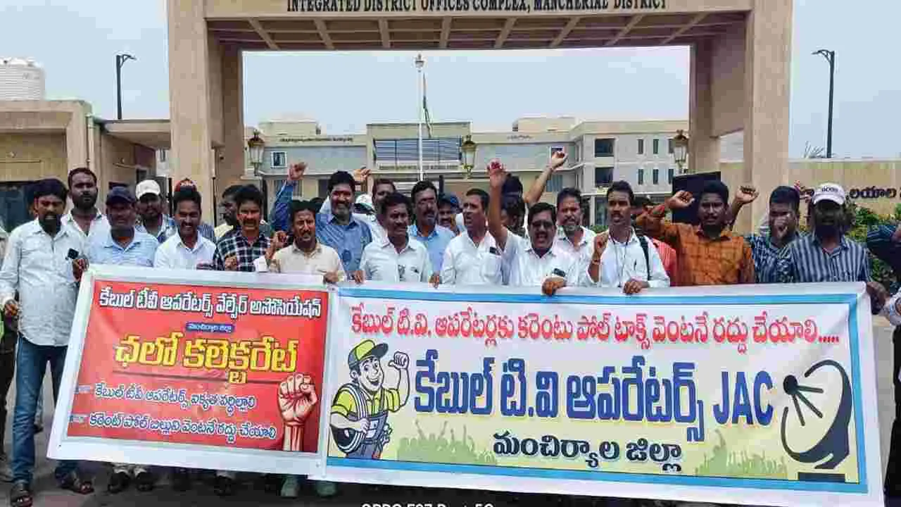 కలెక్టరేట్ ఎదుట కేబుల్ టీవీ ఆపరేటర్లు ధర్నా