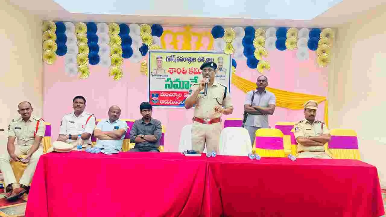 జిల్లా కేంద్రంలో గణేష్ నవరాత్రి ఉత్సవాలను శాంతి యుత వాతావరణంలో ఎలాంటి అపశృతి జరుగకుండా జాగ్రత్తలు పాటిస్తూ నవరాత్రి ఉత్సవాలు నిర్వ హించుకోవాలని మంచిర్యాల ఏసీపీ ప్రకాశ్ అన్నారు.