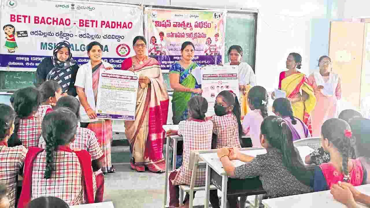 డిండి, జూన 23(ఆంధ్రజ్యోతి): బాల్య వివాహాలు చట్టరీత్యా నేరమని ఐసీడీఎస్ సూపర్వైజర్ రేణుక అన్నారు. మండల కేంద్రంలో ని సోమవారం ఆదర్శ పాఠశాలలో జరిగిన కిషోర బాలికల అవగాహన సదస్సుకు ఆమె హాజరై మాట్లాడారు. 18 సంవ్సరాలు నిండిన తర్వాతే బాలికలకు వివాహం చేయాలని సూచించారు. మేనరికం, బాల్యవివాహాల వల్ల కలిగే అనర్థాల గురించి వివరించారు. కిషోర బాలికలు సెల్ఫోన్లు వాడటం వల్ల కలిగే ఇబ్బందుల గురిం చి వివరించారు. ఐసీపీఎస్ అధికారి అంజలి మాట్లాడుతూ మిషన వాత్సల్యపై అవగాహన కల్పించారు. బాలల హక్కులు, చైల్డ్ హెల్ప్లైనలకు సంబంధించిన 1098, 100 టోల్ఫ్రీ నెంబర్ల ఆవశ్యకతను తెలిపారు. వ్యక్తిగత పరిశుభ్రత, పరిసరాల పరిశుభ్రత, విద్య ఆవశ్యకతపై బాలికలకు వివరించారు. అలాగే దత్తత తీసుకునే విధానంపై అ వగాహన కల్పించారు. ఈ కార్యక్రమంలో ప్రిన్సిపాల్ జ్యోతి, అంగనవాడీ టీచర్లు, కిషోర బాలికలు పాల్గొన్నారు.